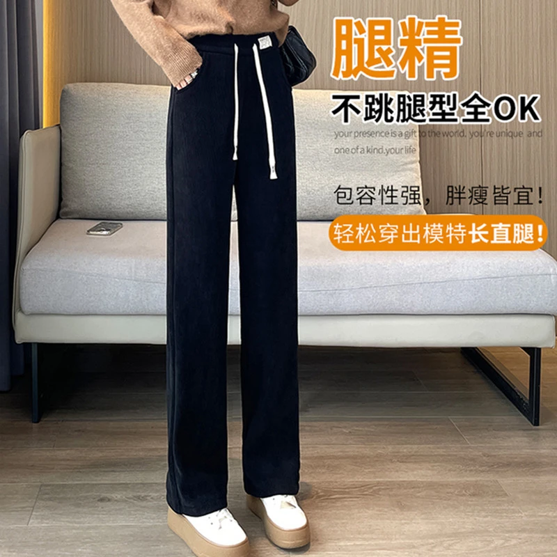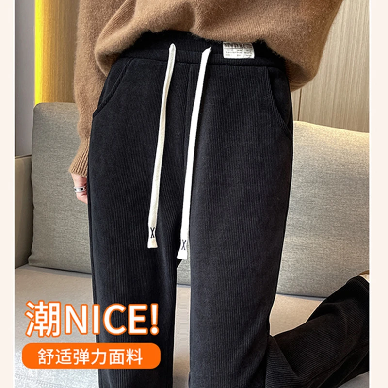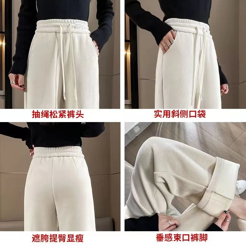 秋冬加绒加厚休闲裤 暴力熊女装 新款 时尚 女宽松显瘦百搭 直筒阔腿裤