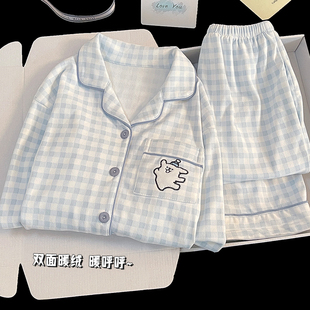长袖 睡衣女款 纯棉休闲韩版 可外穿秋季 2025年新款 家居服套装 春秋款