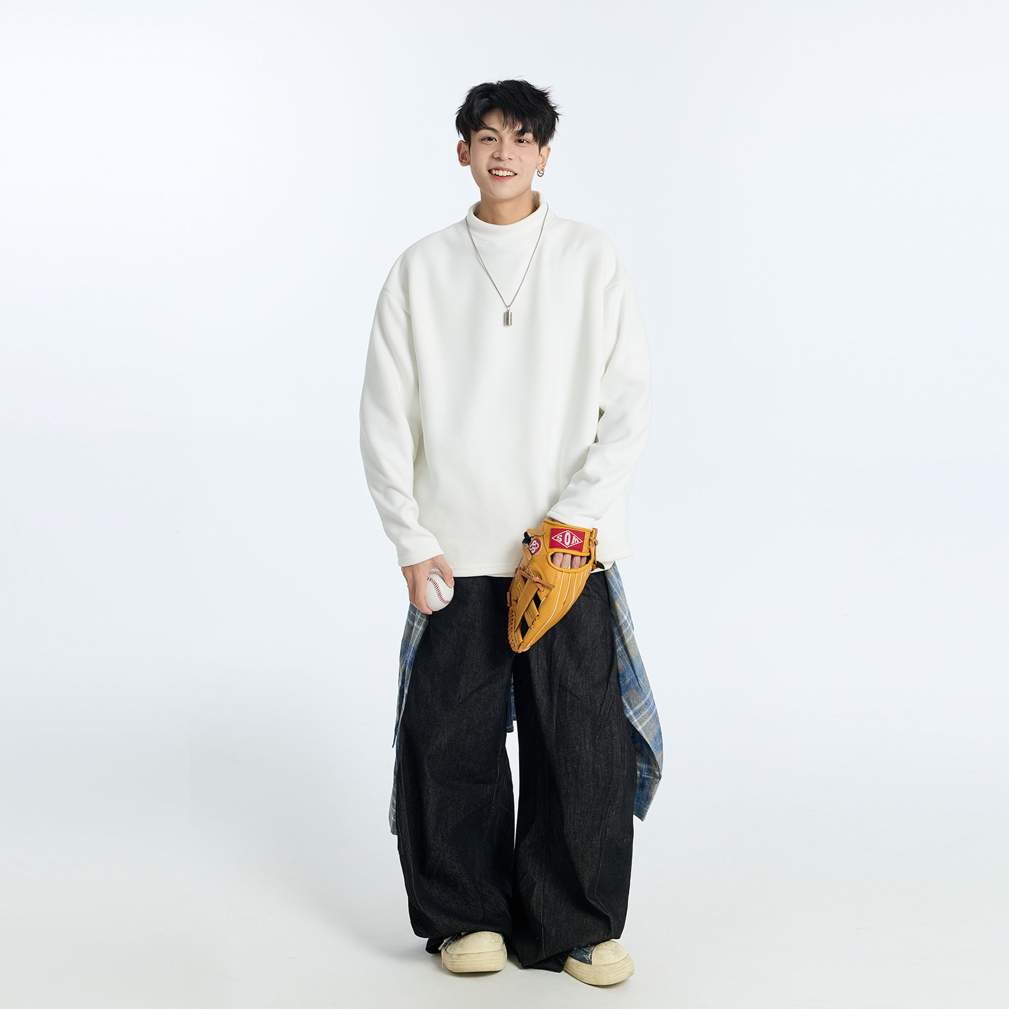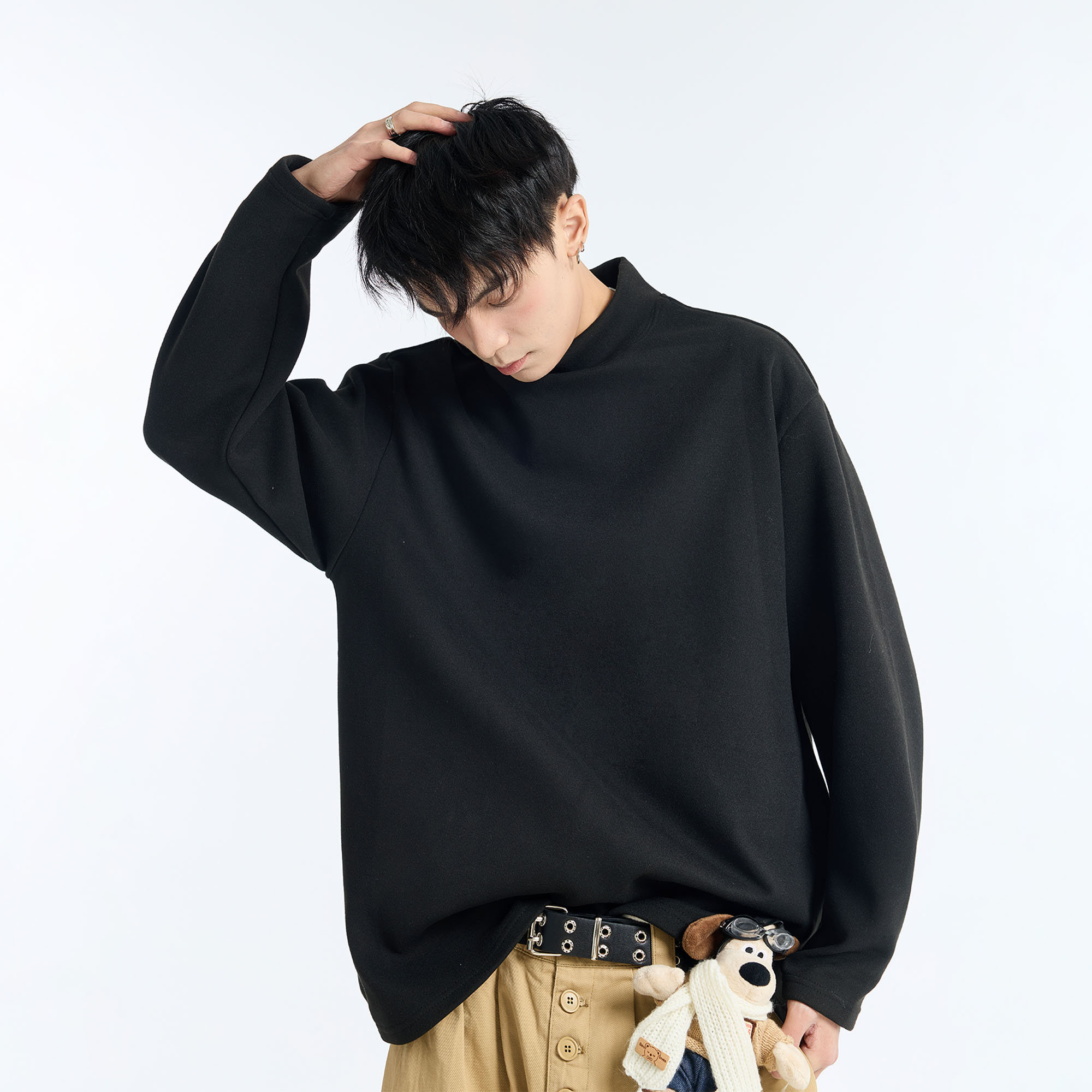 潮牌保暖白色长袖 GKKRT半高领德绒打底衫 内搭宽松美式 秋季 T恤 男款