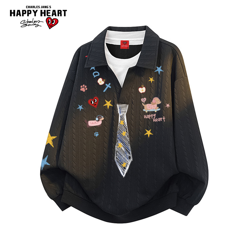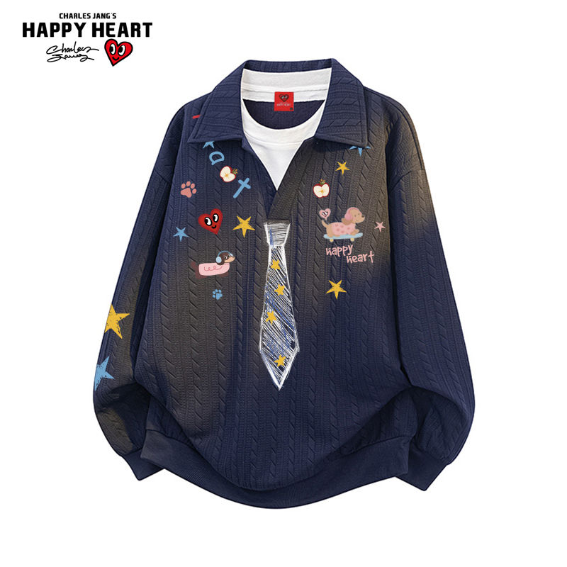 查尔斯桃心涂鸦领带假两件衬衫 情侣休闲衣服 领卫衣男女宽松秋冬季