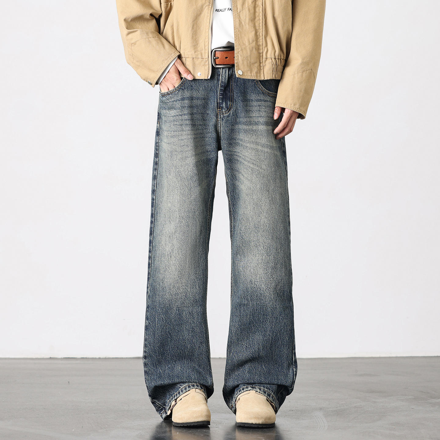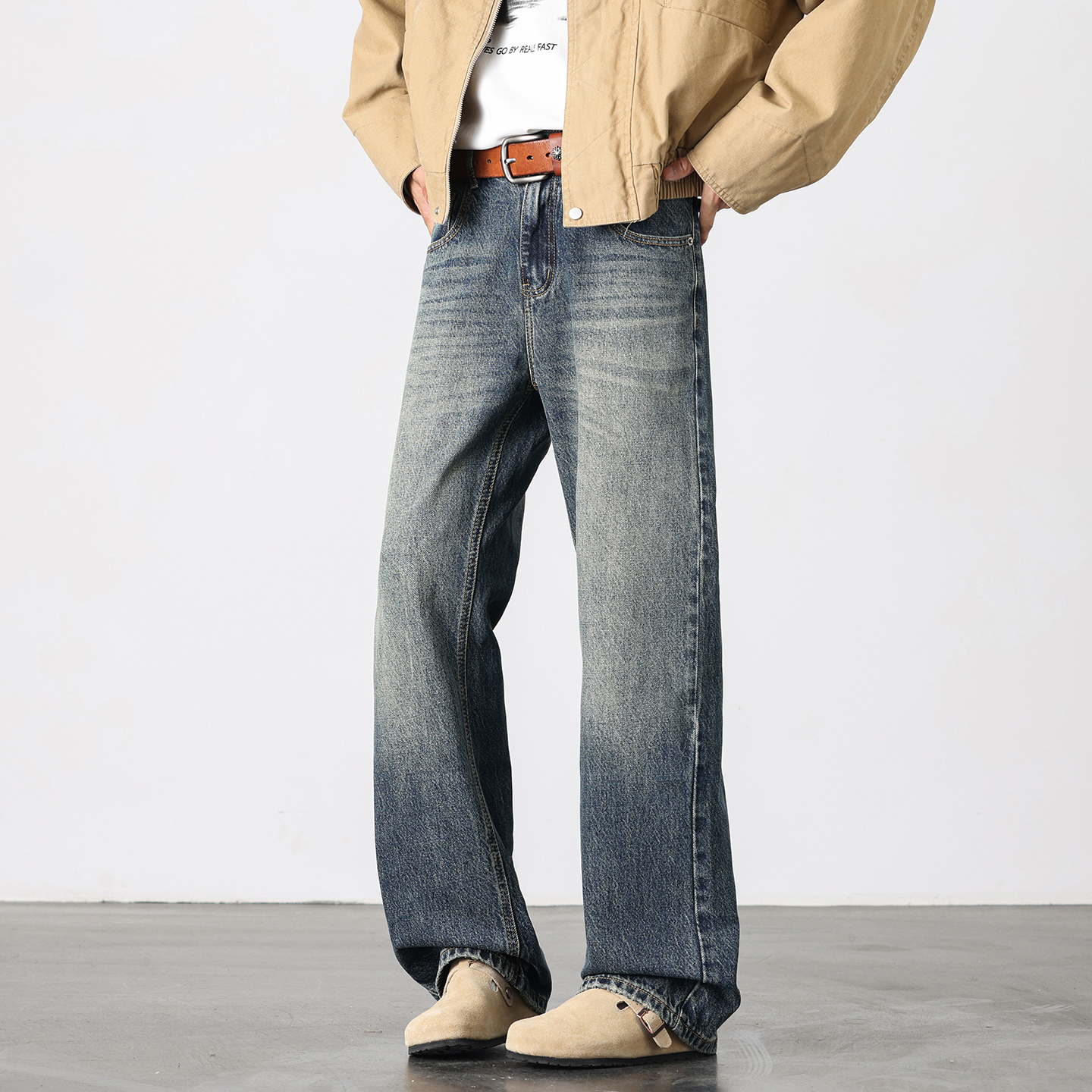 秋季 男款 2025新款 宽松直筒长裤 罗蒙美式 子男春秋款 高街复古牛仔裤