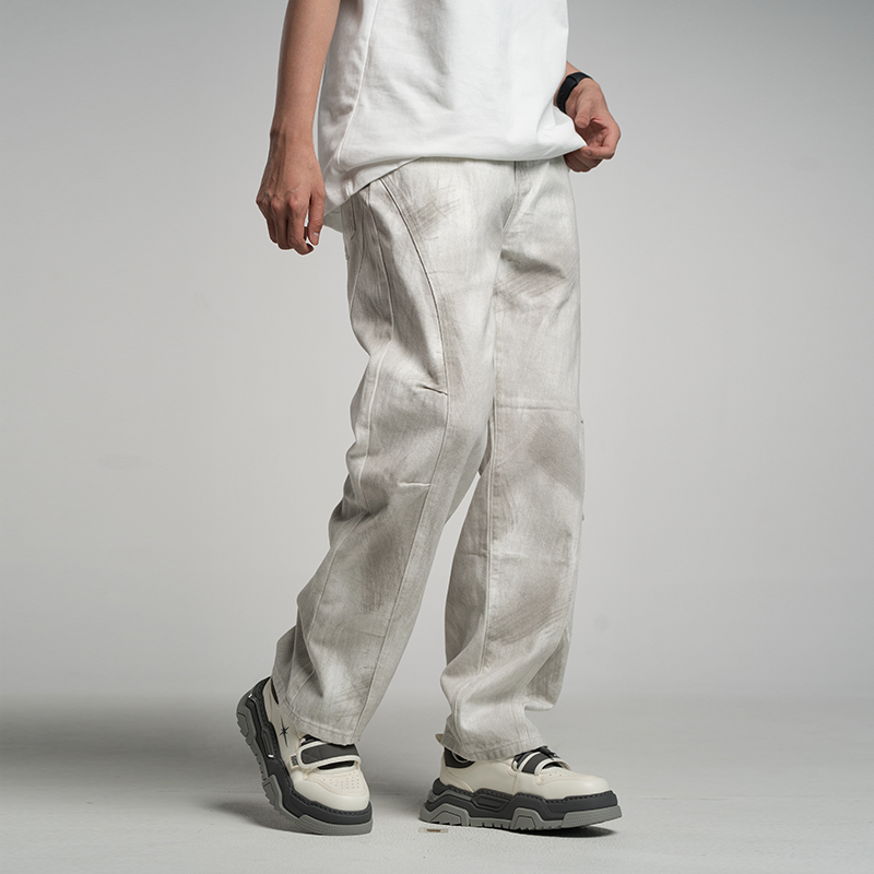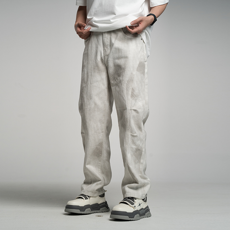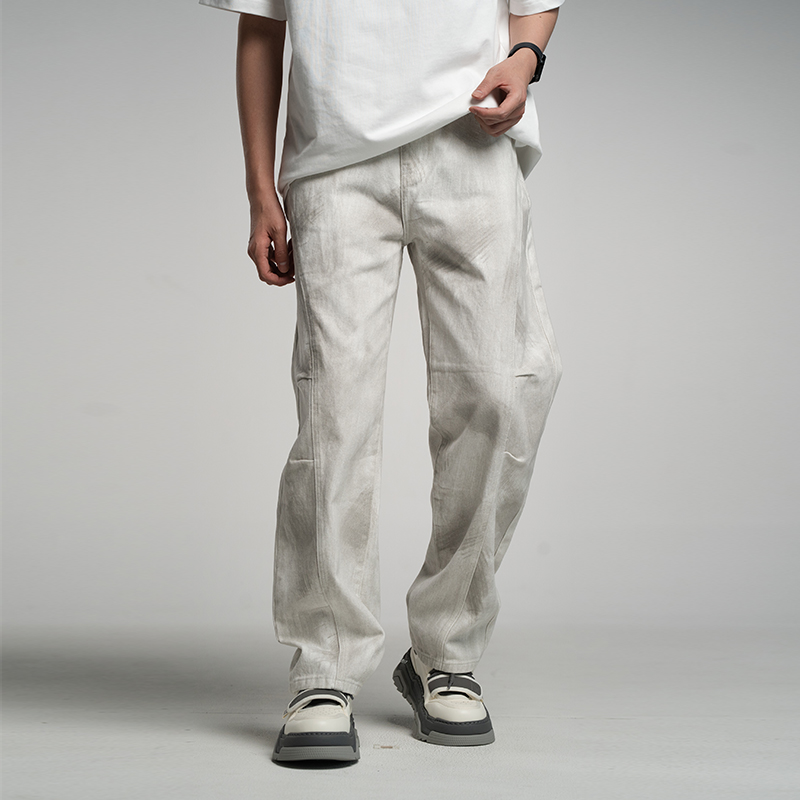 男士 白色直筒牛仔裤 宽松大码 裤 秋季 子高级设计感百搭休闲长裤 新款