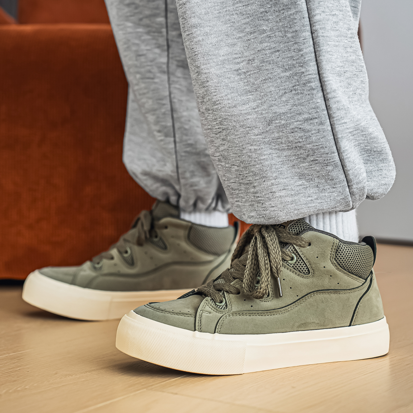 靴子 真皮防水厚底增高工装 森马马丁靴男秋季 高帮百搭休闲白色板鞋