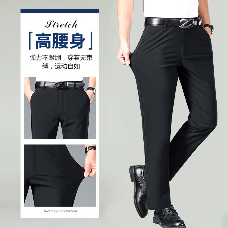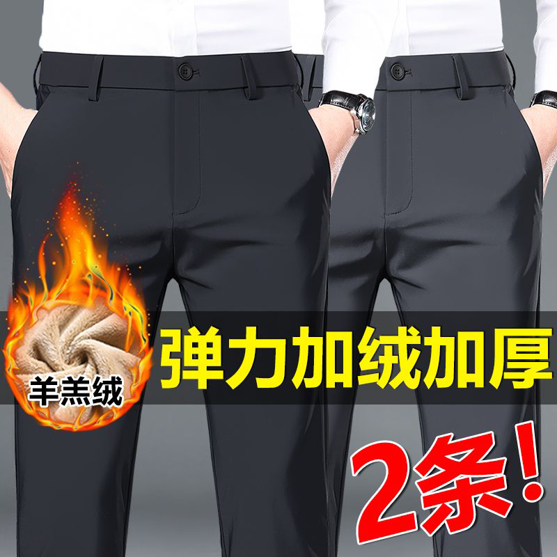 男士 宽松爸爸裤 休闲裤 大码 子父亲 弹力高腰中老年商务西裤 秋冬厚款
