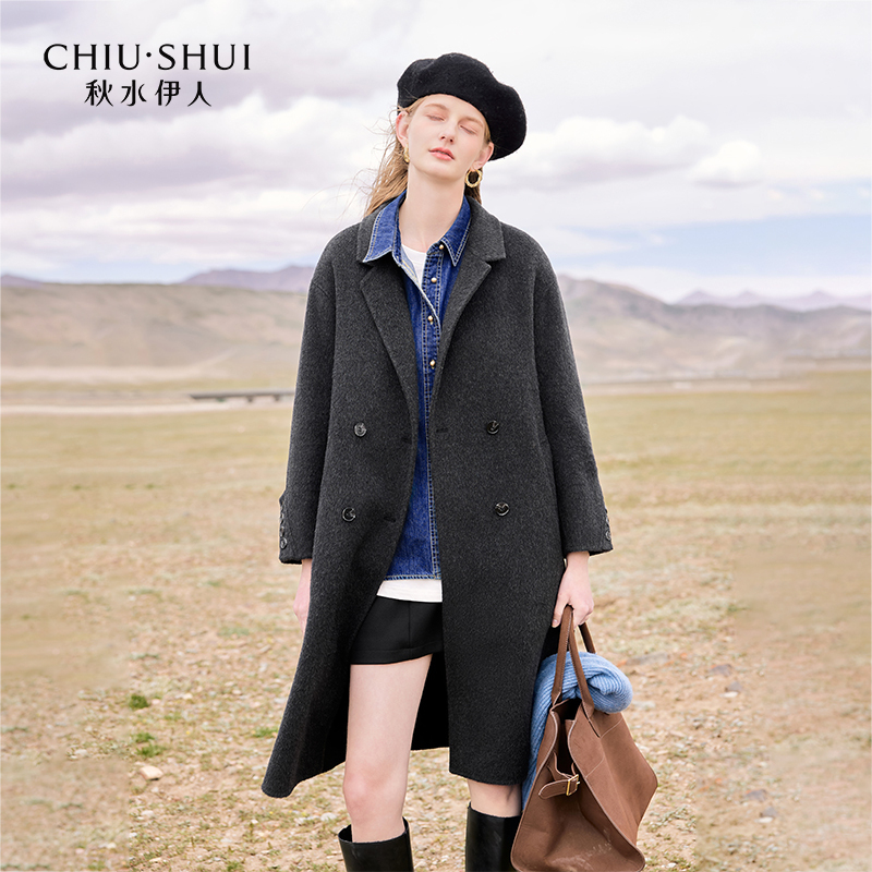 新款 2025冬季 秋水伊人优雅翻领毛呢外套 通勤大衣 100%绵羊毛