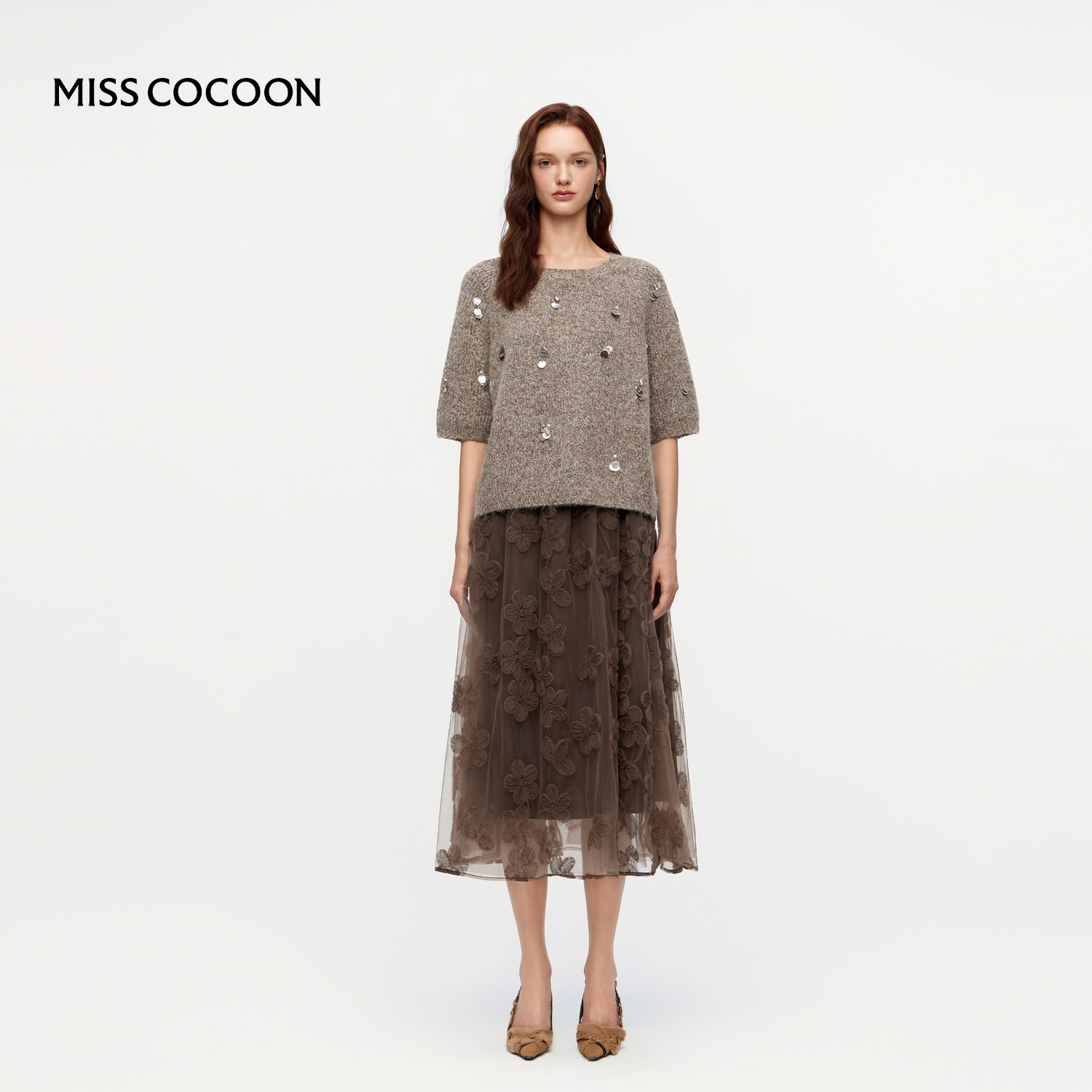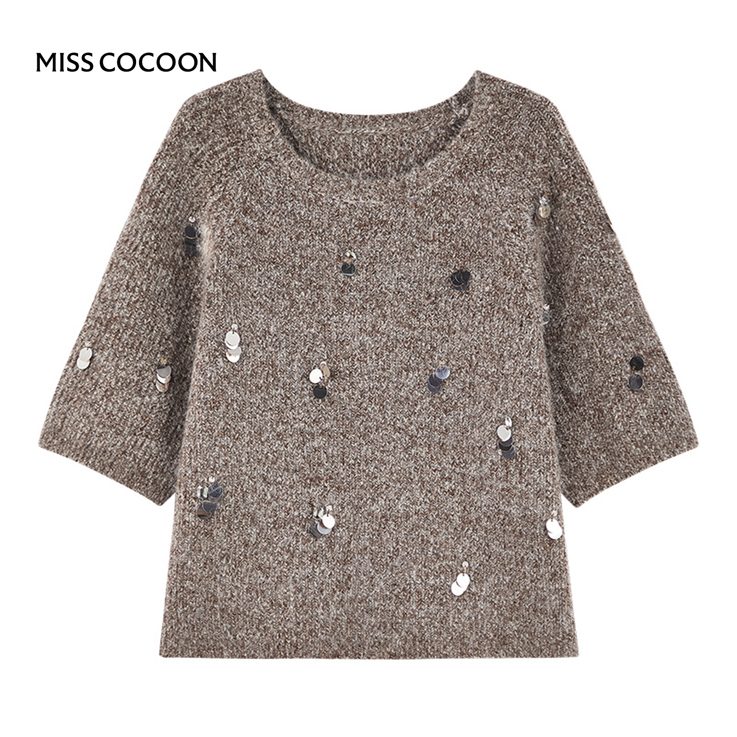 MISSCOCOON可可尼咖色套头毛衣女2025冬新款 miu系亮片兔毛针织衫