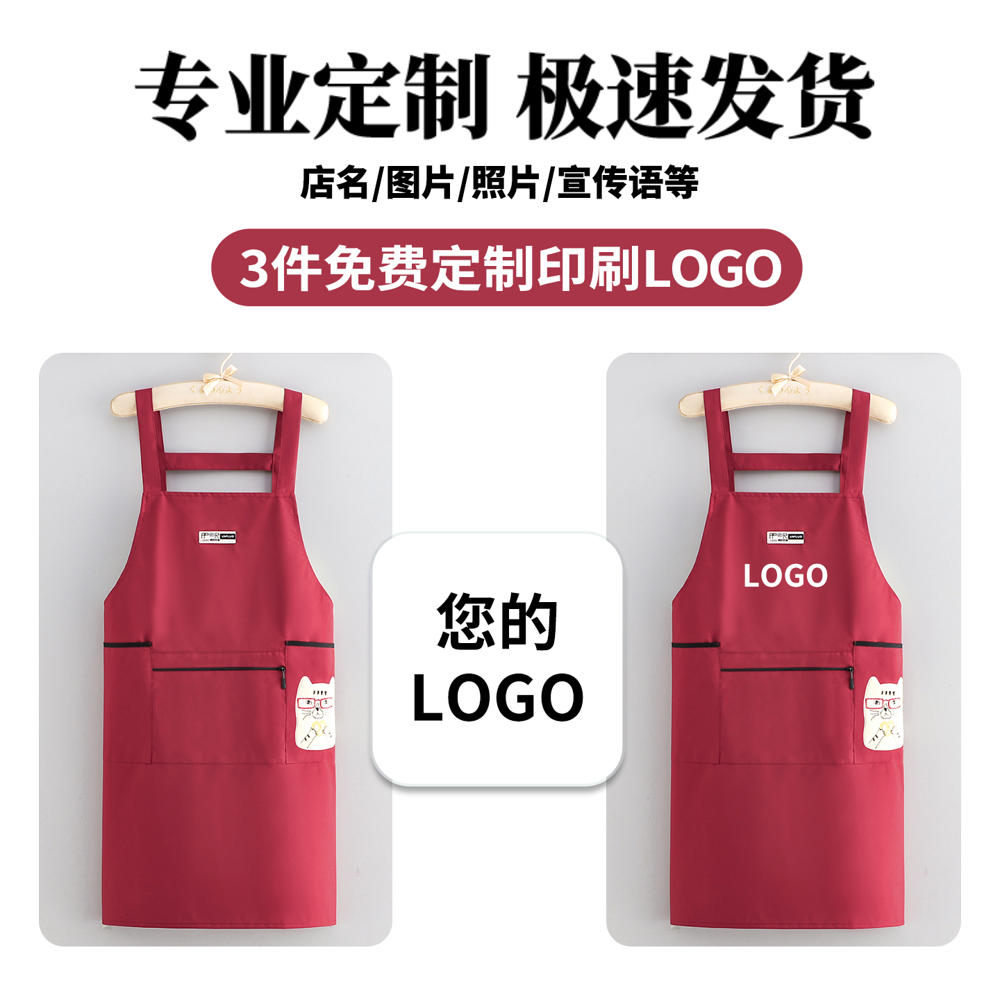 时尚 男女卡通加厚防水防油围裙家用厨房做饭餐饮专用定制logo围腰