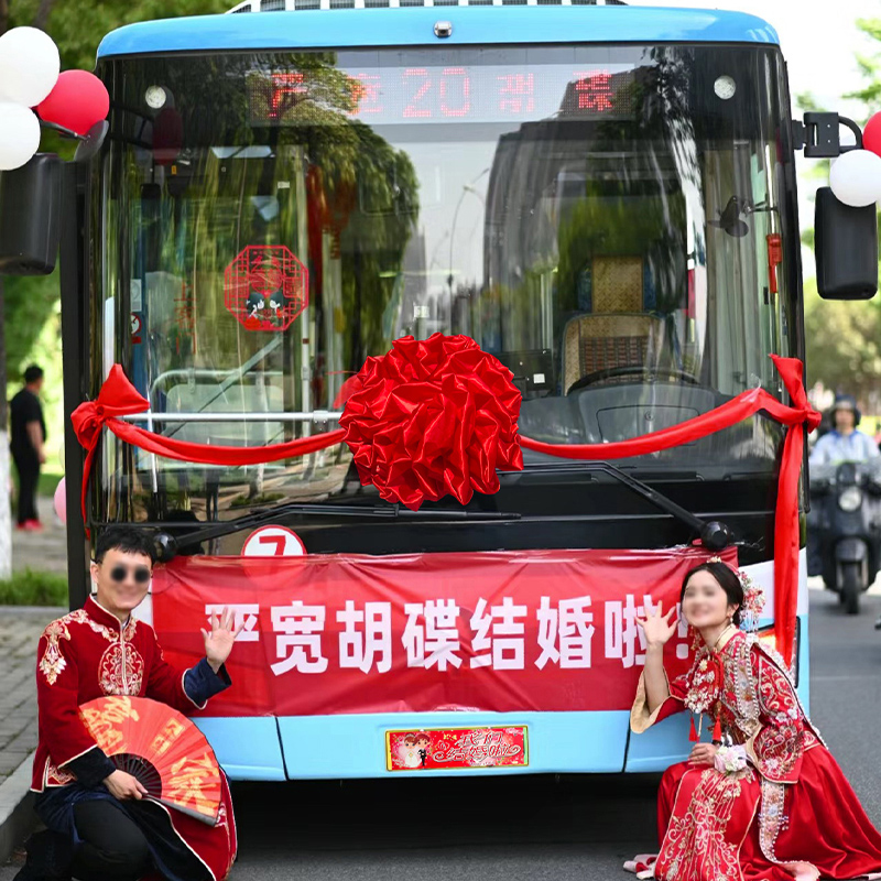 婚车拉花结婚装 饰接亲车队大号手汽车红丝带副车彩带婚礼用品大全
