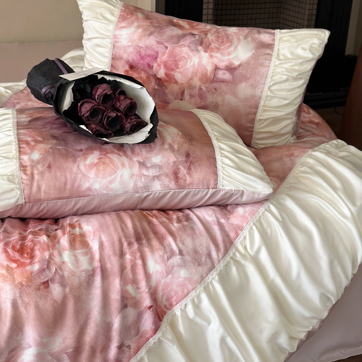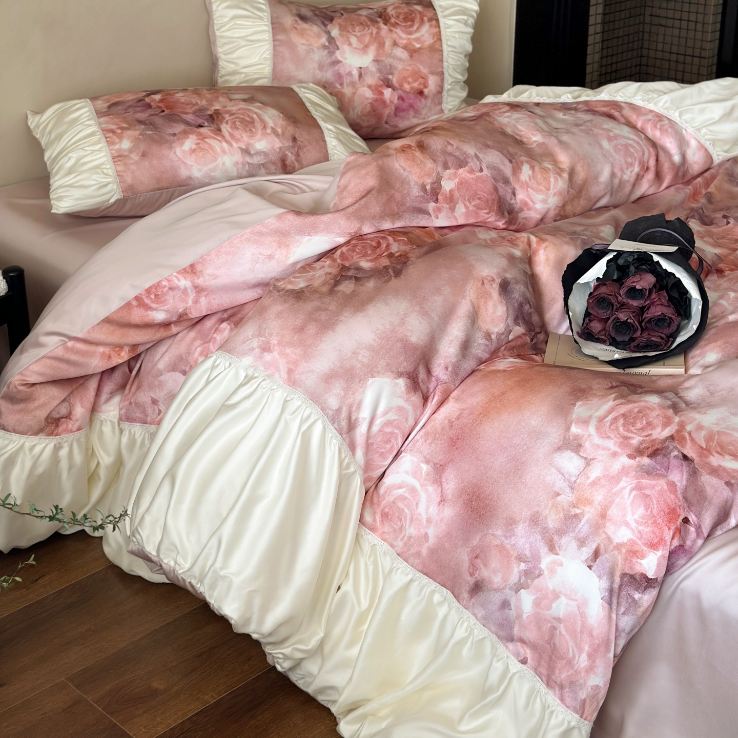 红花车法式 印花四件套复古浪漫被套床单公主风床上用品 天丝棉数码