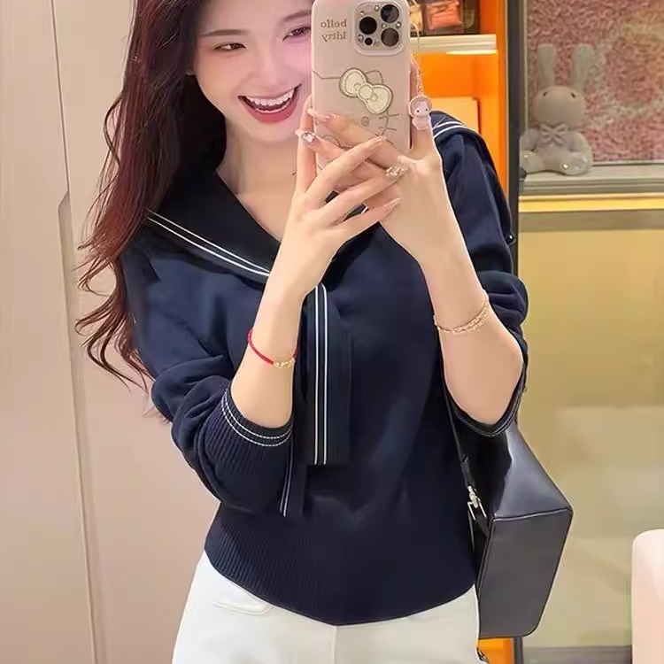 佐梦依休闲系带针织毛衣