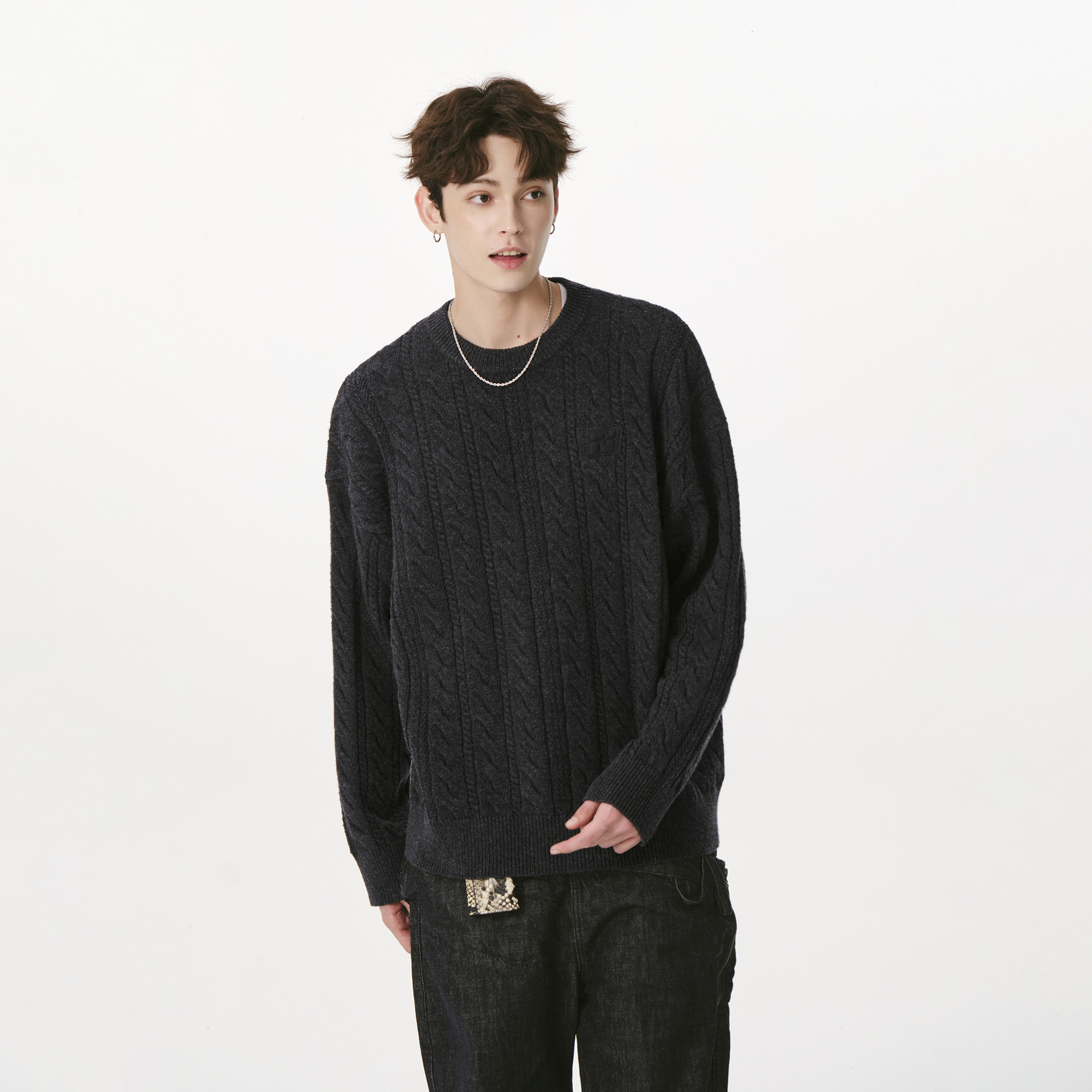 宽松保暖慵懒感内搭毛衣 新款 紫涵手工小象圆领羊毛针织衫 女冬季