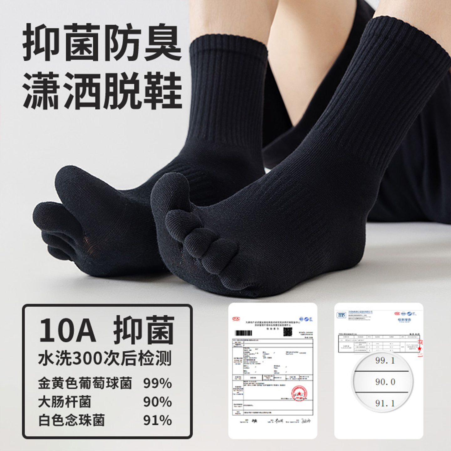 男士 纯棉五指袜秋冬10A抗菌防臭吸汗透气运动休闲百搭舒适中筒袜