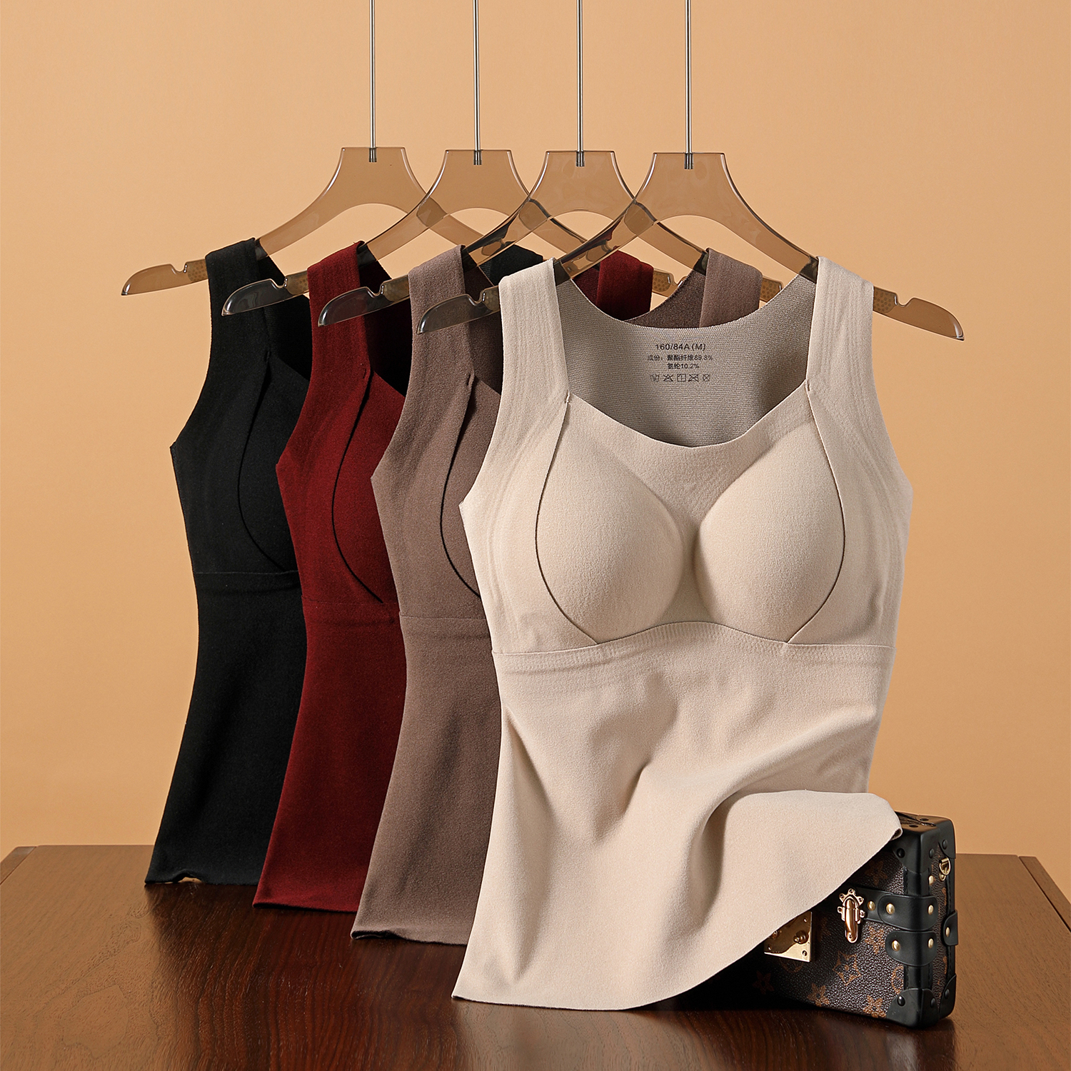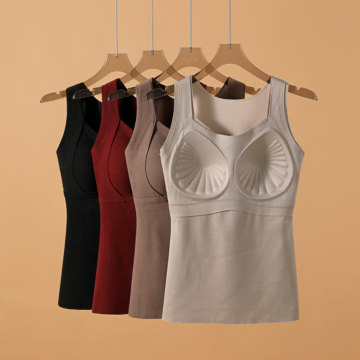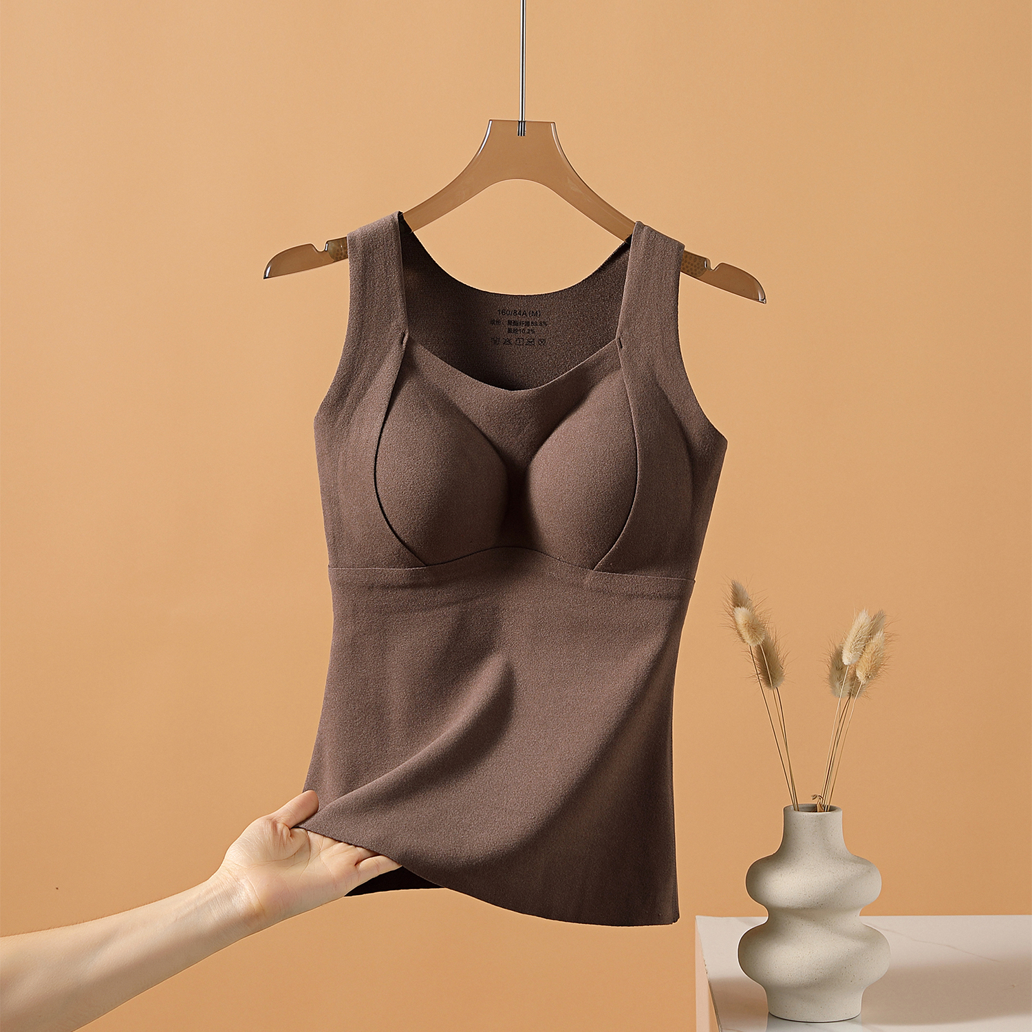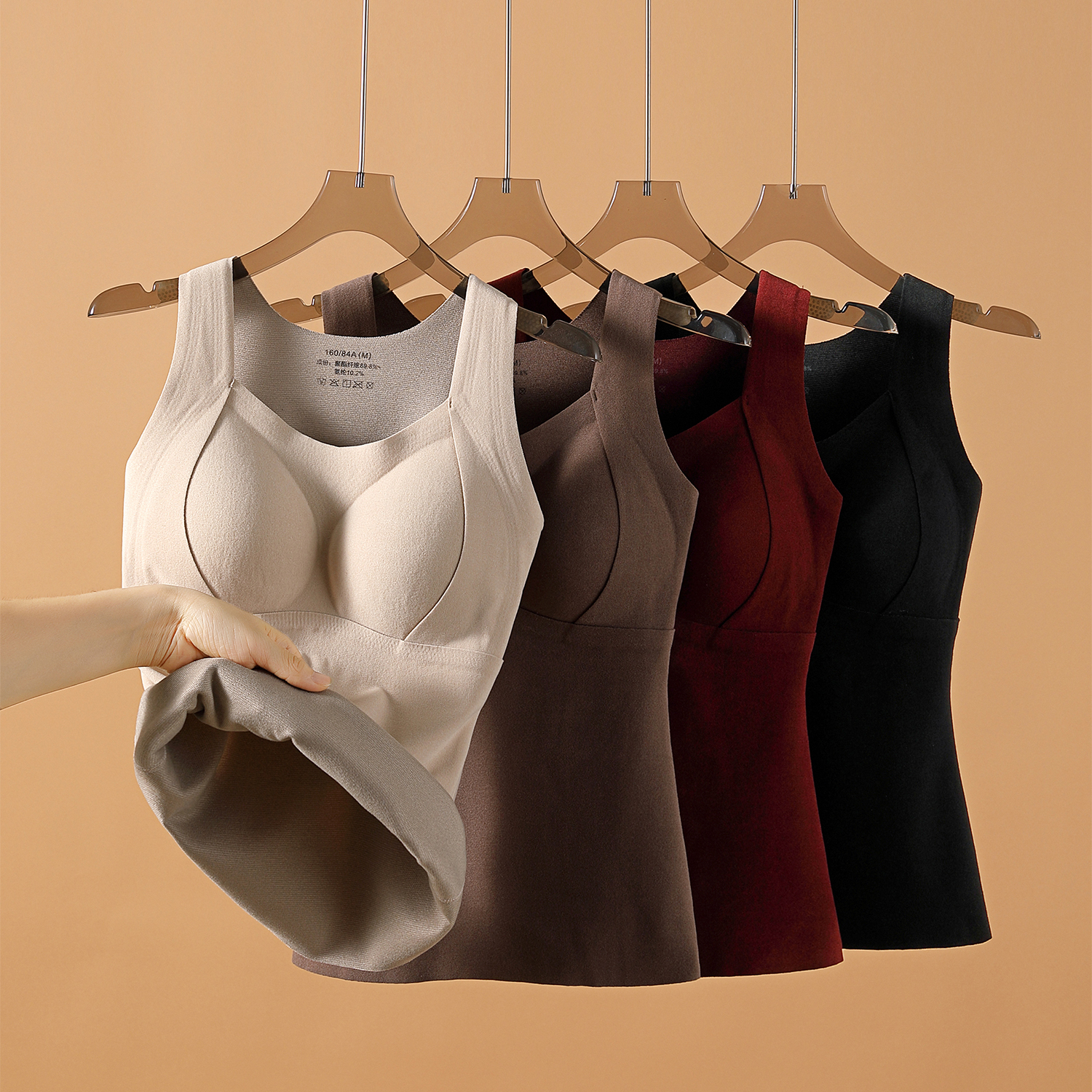 桑蚕丝保暖吊带背心女2025秋加绒加厚发热无痕自带胸垫一体内衣冬