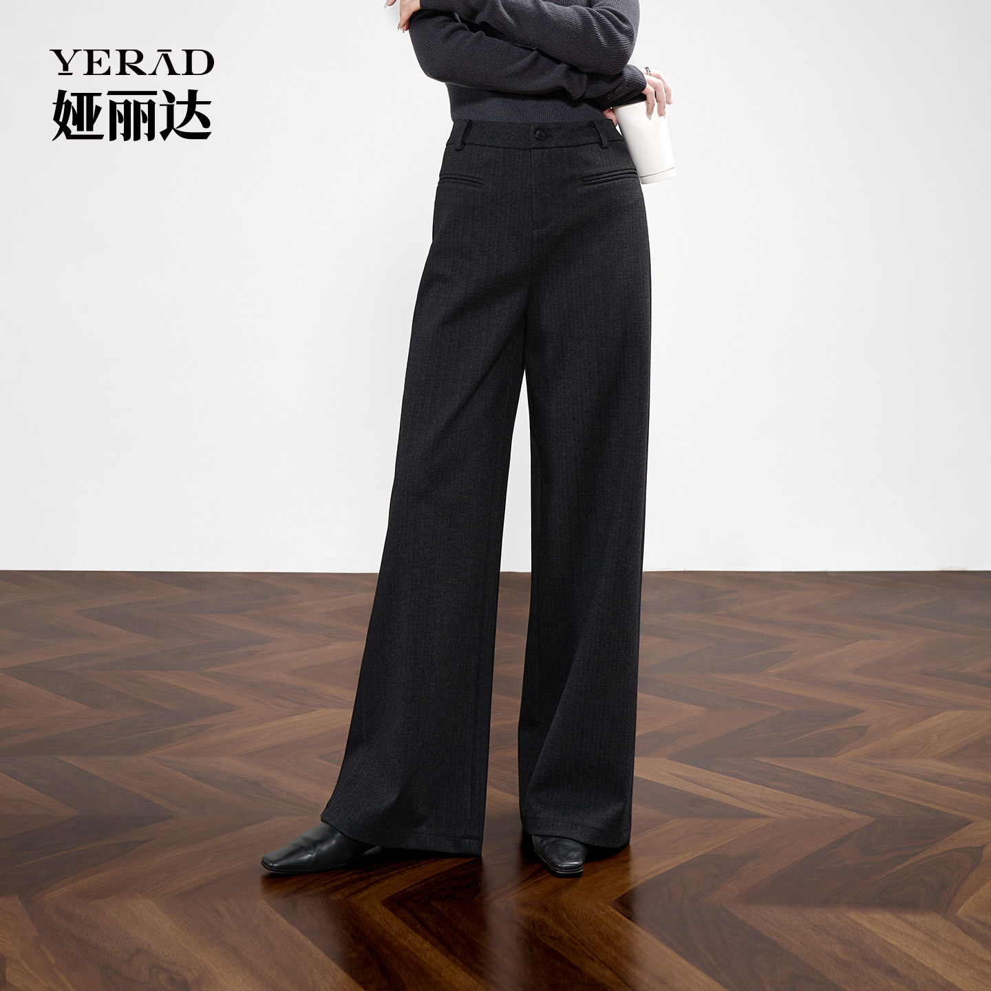 子黑色休闲裤 宽松显瘦通勤拖地长裤 女2025秋新款 娅丽达针织阔腿裤