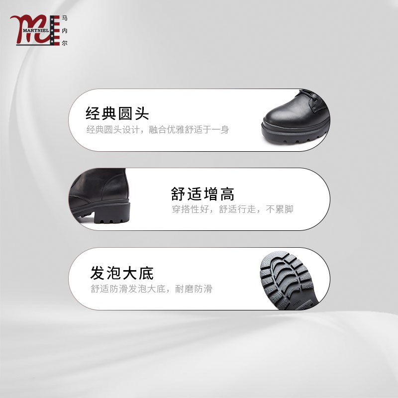 黑色增高靴子女时尚 新款 休闲皮面短靴 2025秋季 环球厚底马丁靴女款
