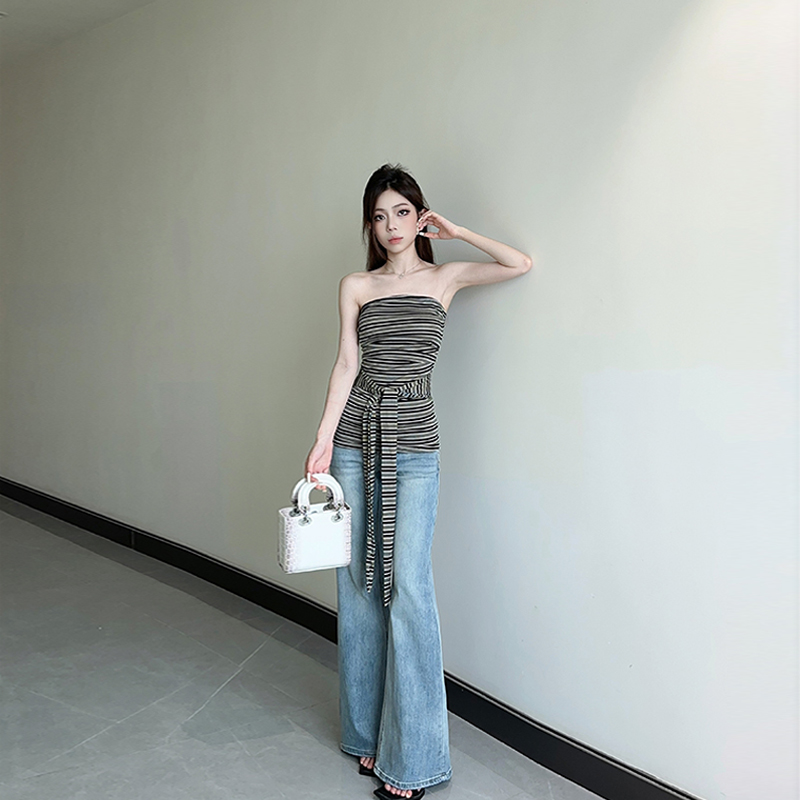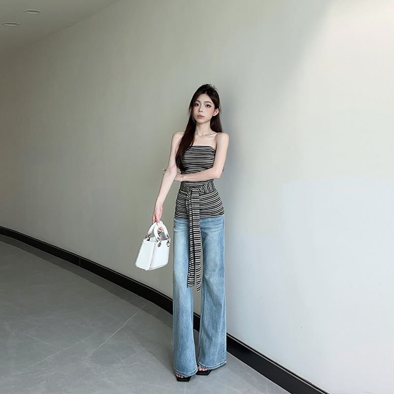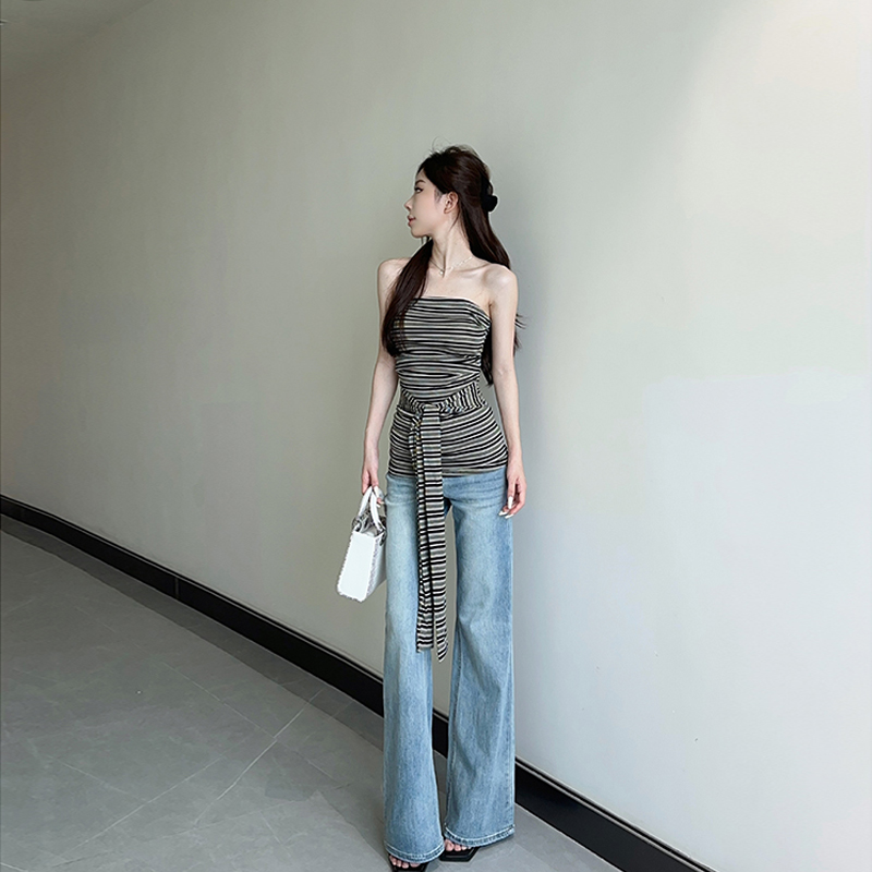 简单干净显瘦显高喇叭长裤 新款 女2025秋季 清新蓝调低腰微喇牛仔裤