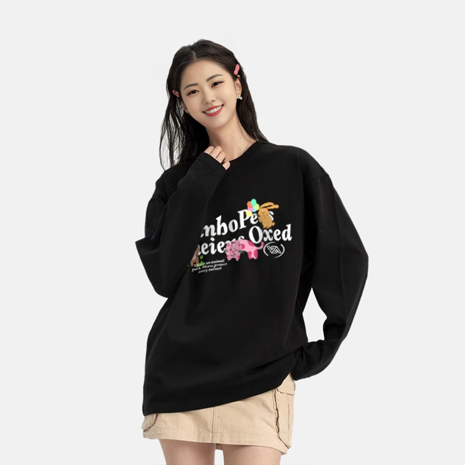 潮牌胶印情侣长袖 260克纯棉美式 C3501 威宏丝春秋新款 VINHOPESS