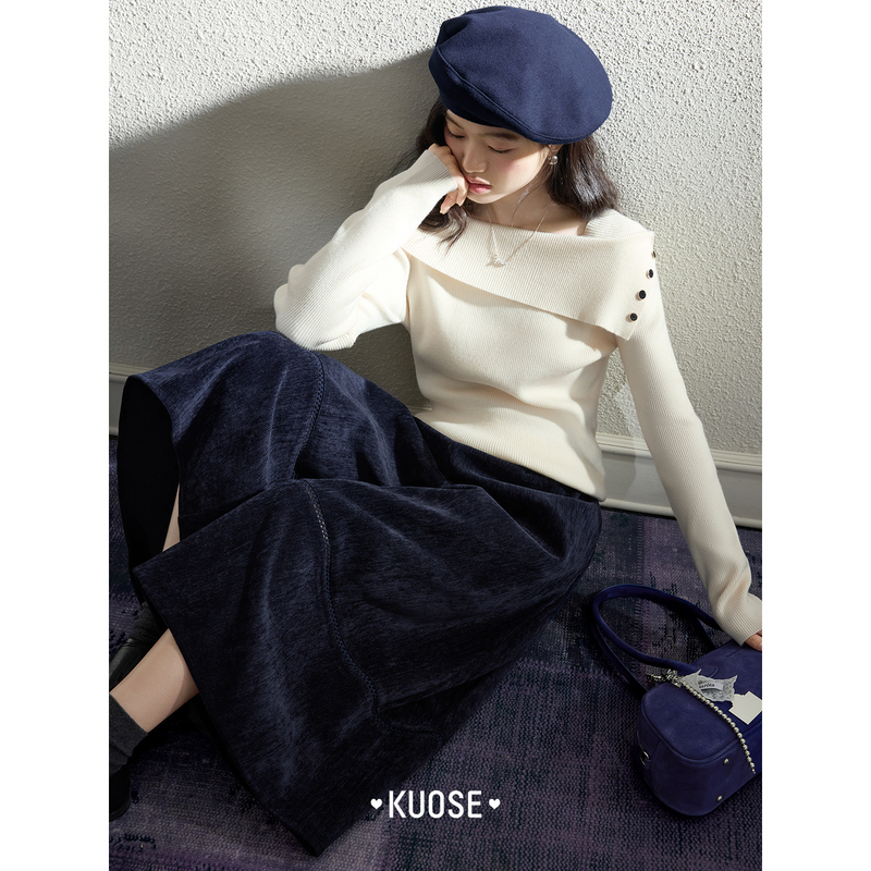 小个子通勤高腰七分裤 阔色藏蓝色气质半身裙裤 新款 2025秋冬季 女装