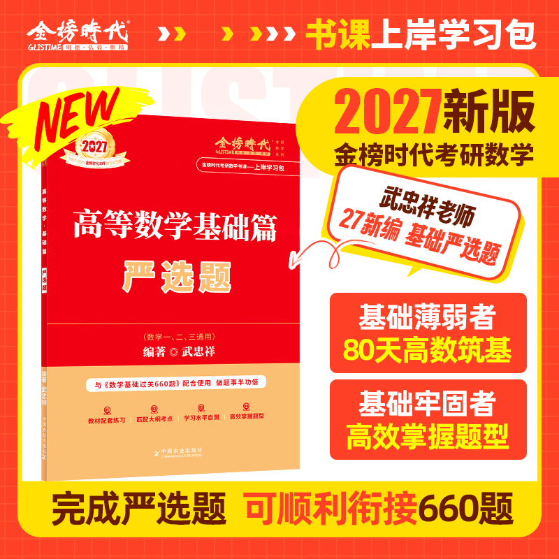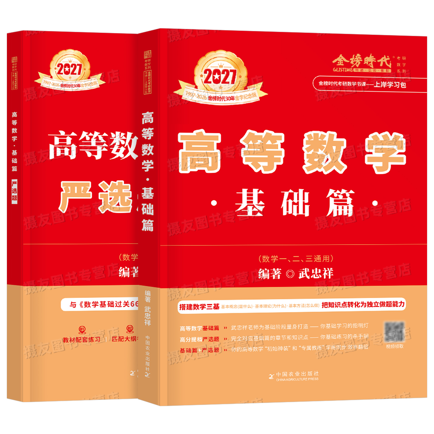 2027武忠祥高等数学基础篇严选题考研高数辅导讲义李永乐线性代数复习全书数二660题三强化王式 安概率论27历年真题提高线代模拟卷
