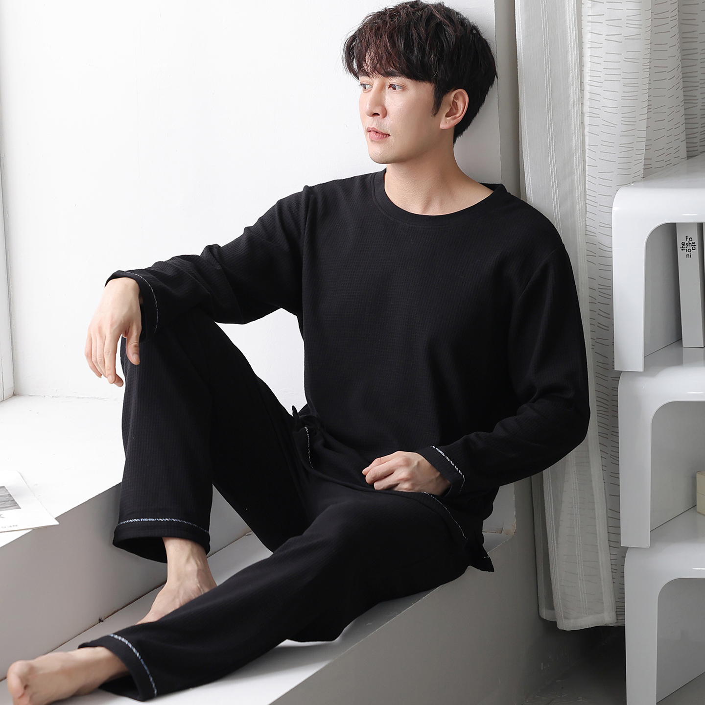 家居服套装 长袖 柔软春秋透气阳光棉睡衣男女 开衫 松山棉店棉柔男士