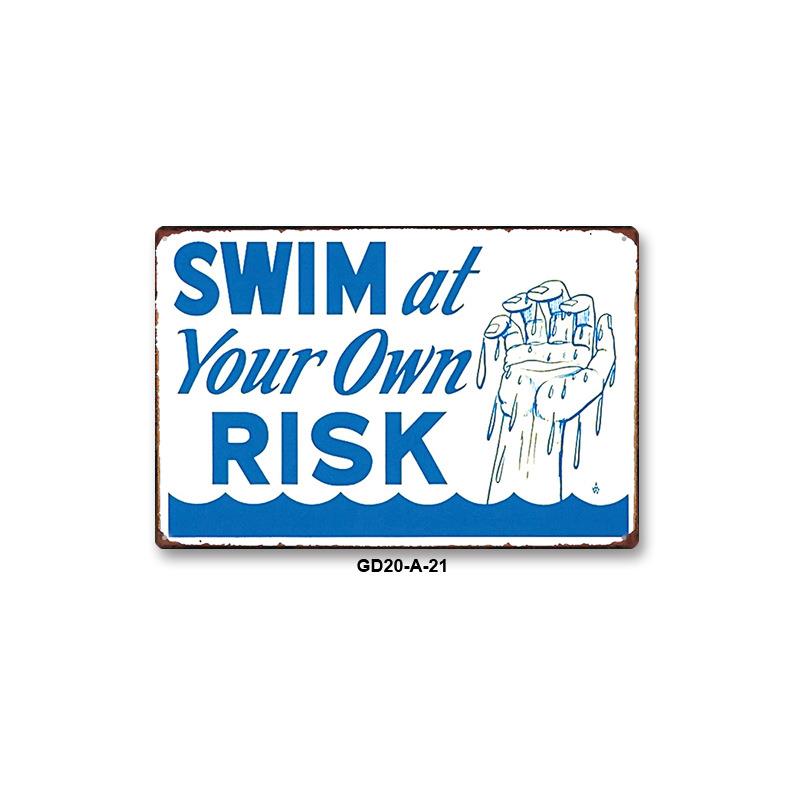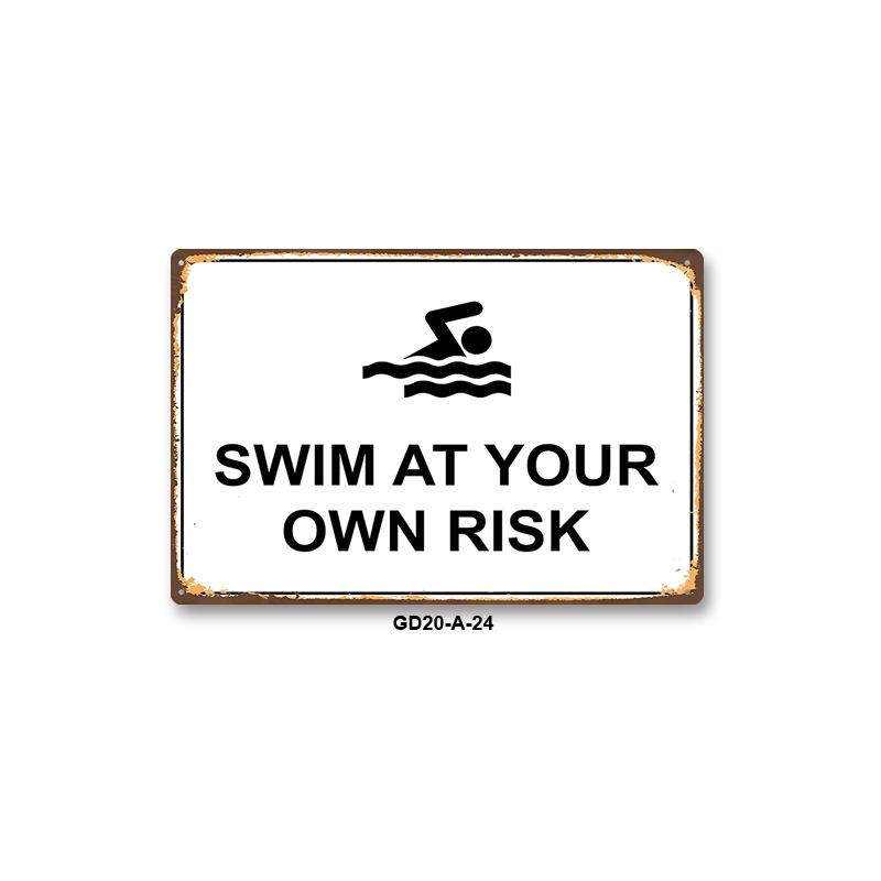 Decor跨境墙牌Awim Metal 铁皮画 画游泳池提示警告牌家居壁饰Tin