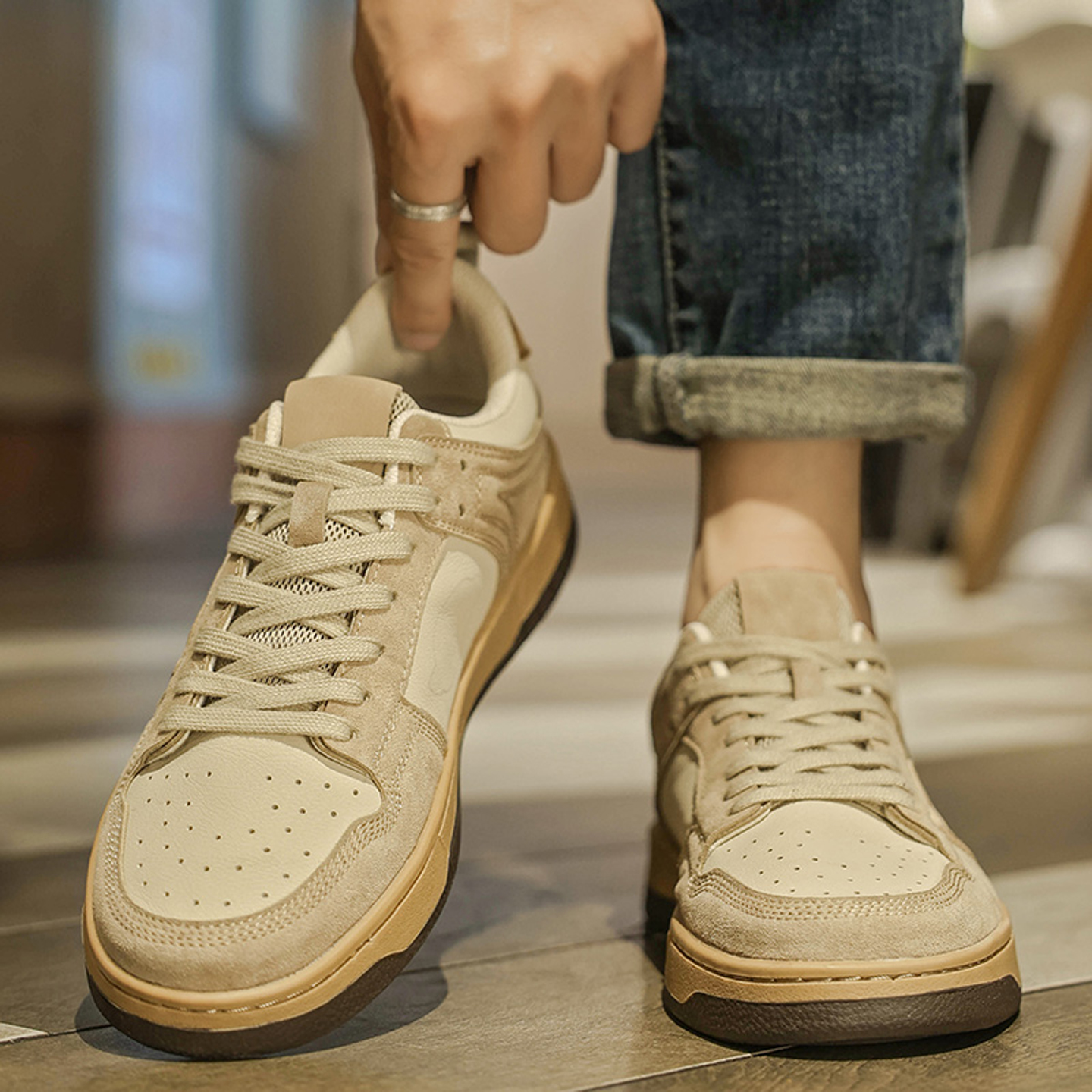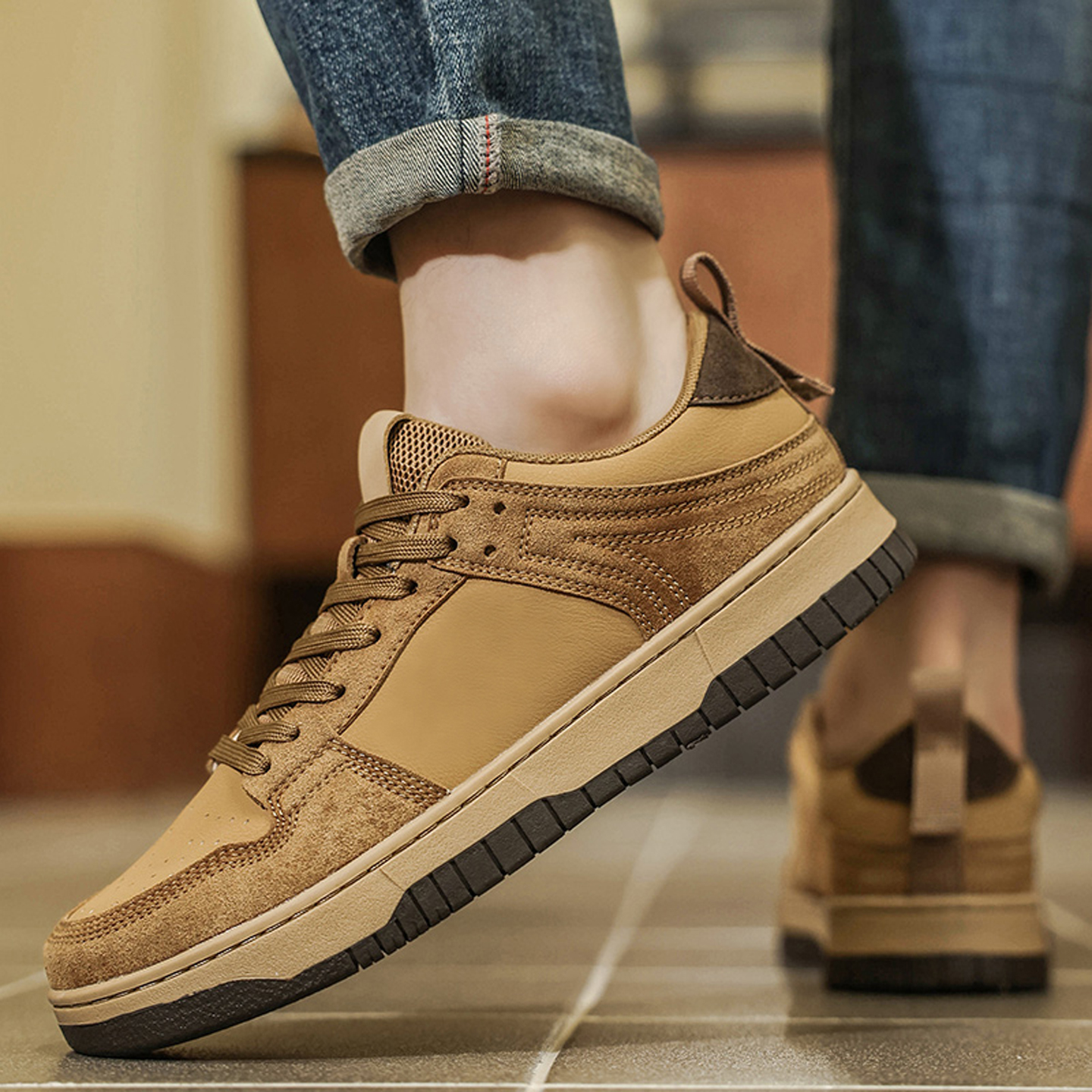 男2025秋季 子透气防滑板鞋 新款 休闲鞋 男鞋 双11预售骆驼月白运动鞋