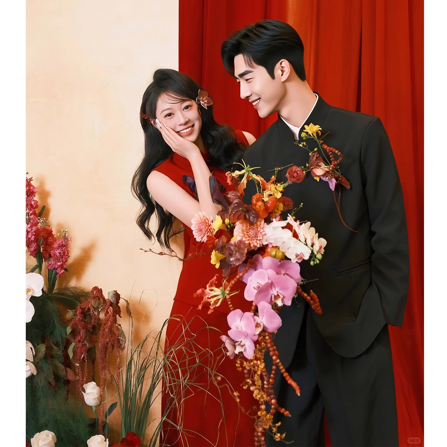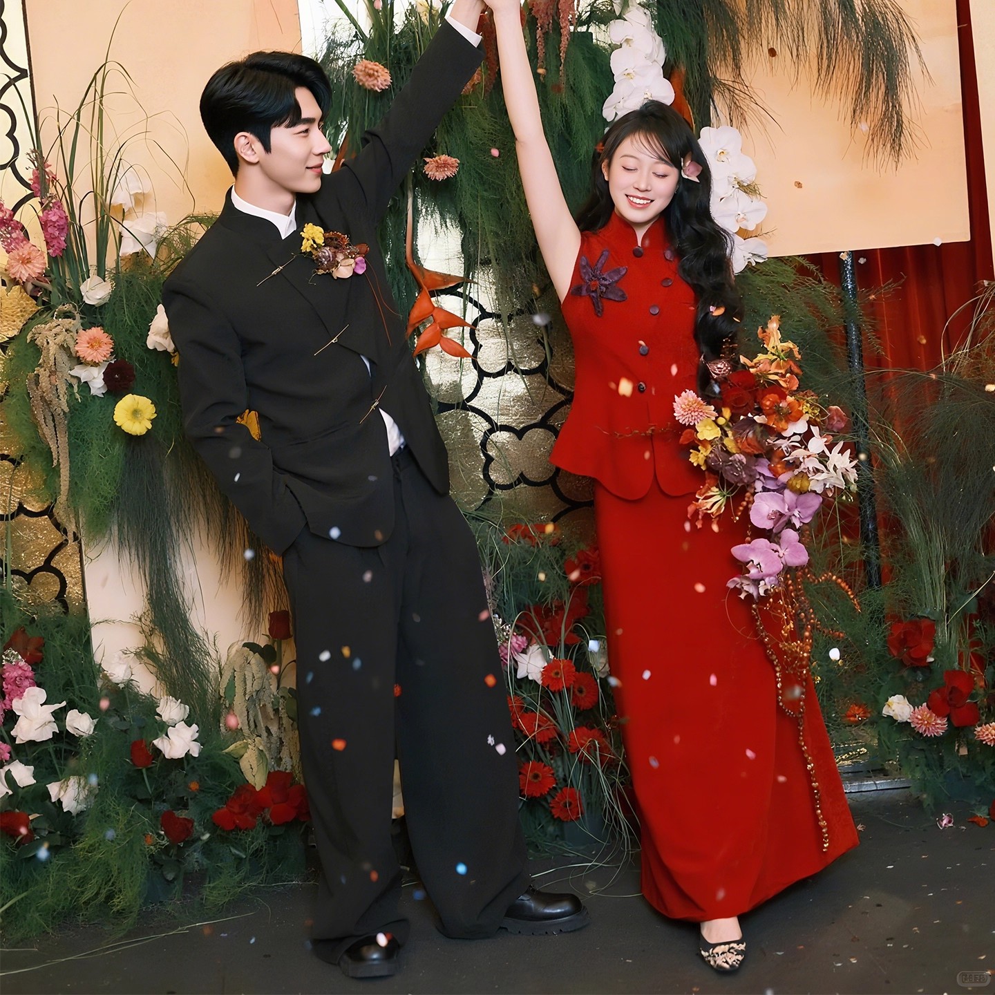 男套装 正装 订婚穿搭礼服高定戗驳领垫肩西服 山茶花刺绣西装 新中式