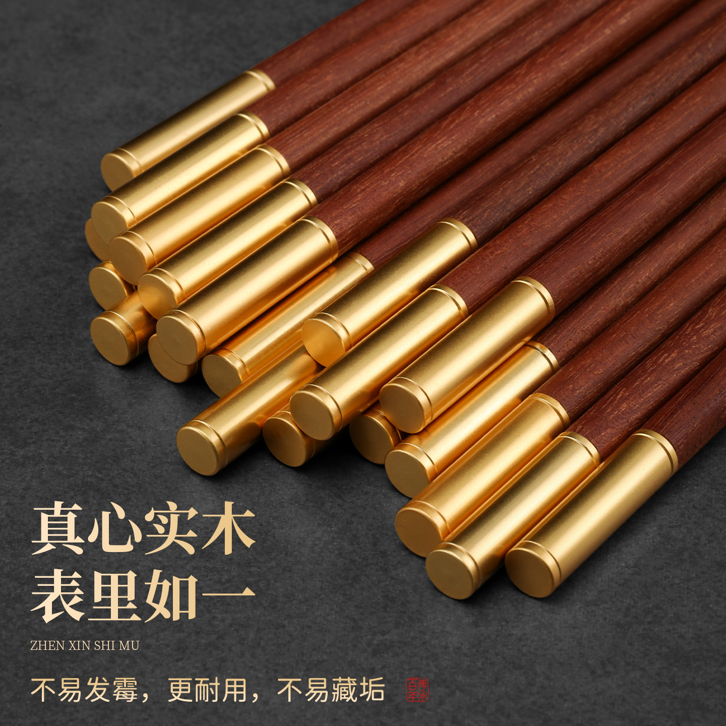双枪非洲花梨木筷子家用无漆无蜡抗菌防滑防霉耐高温家庭装