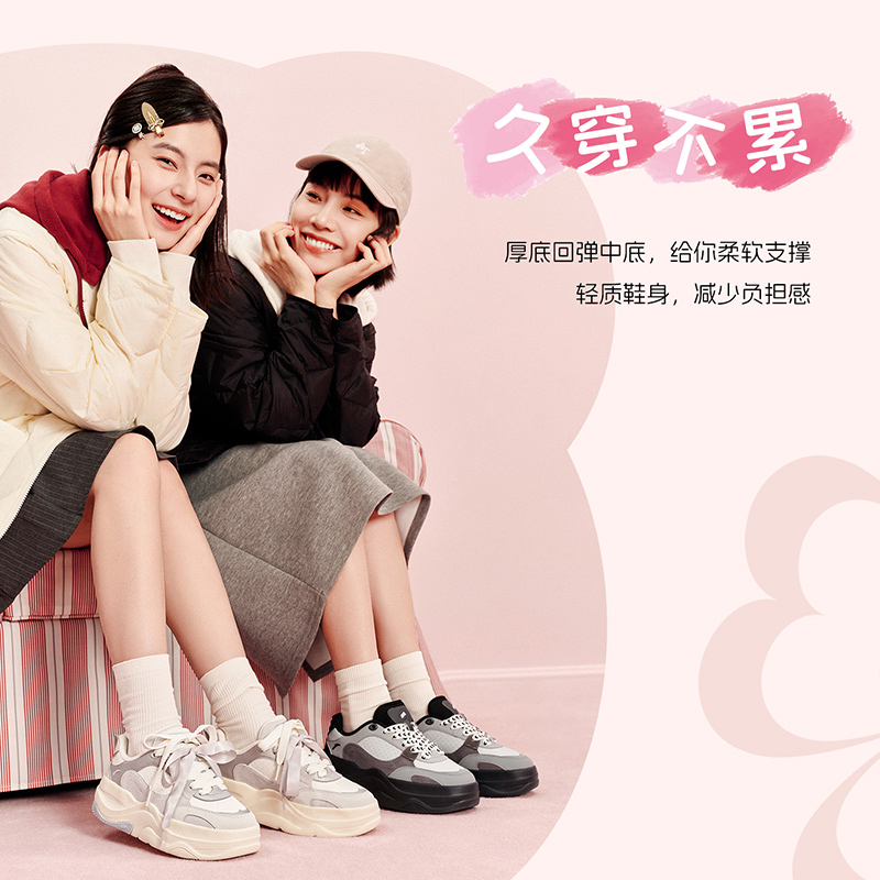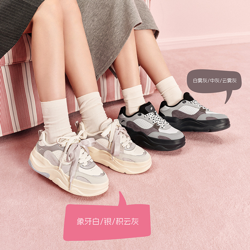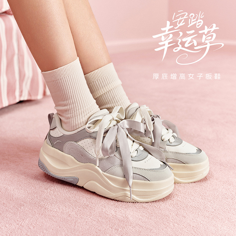 厚底增高面包鞋 不累脚软底运动鞋 板鞋 新款 女2025秋季 安踏幸运草