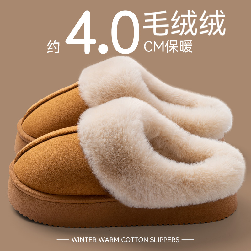 室内家居厚底防滑加绒保暖毛拖鞋 棉拖鞋 秋冬2025新款 月子鞋 女 女款