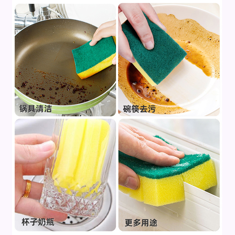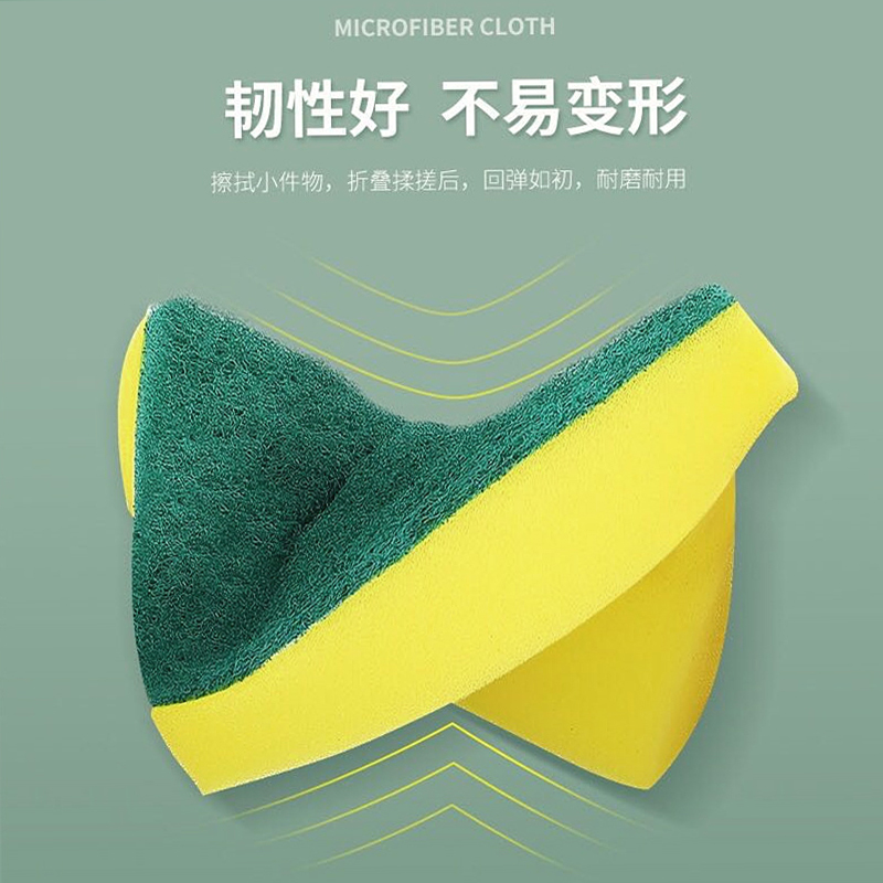U先试用 5片双面洗碗海绵擦黄绿清洁去污吸水性强加厚海绵擦锅
