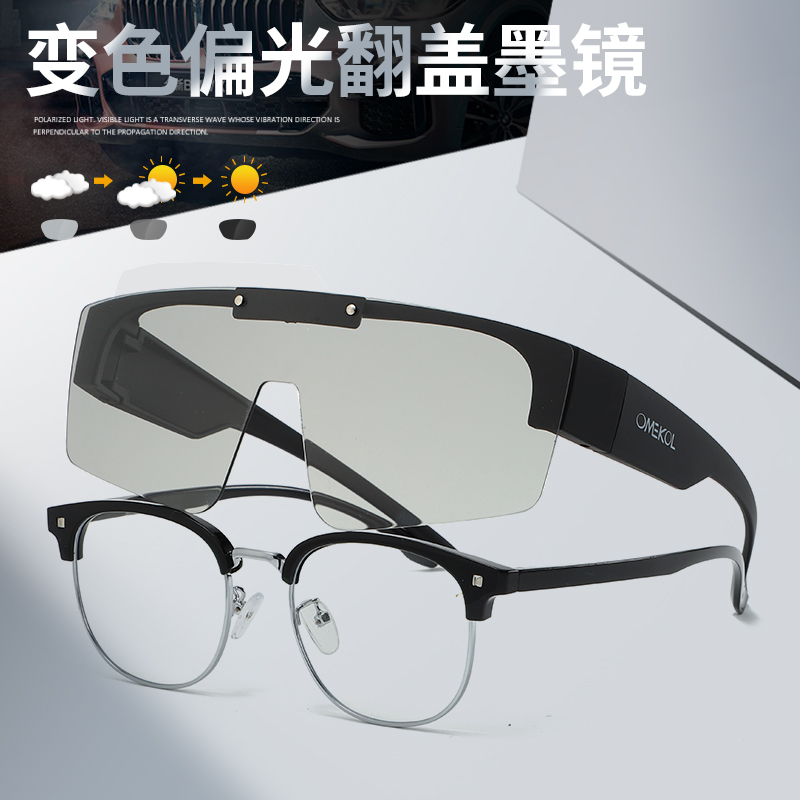 辕觅OMEKOL新款 偏光变色近视套镜骑行眼镜男女通用防风运动护目镜