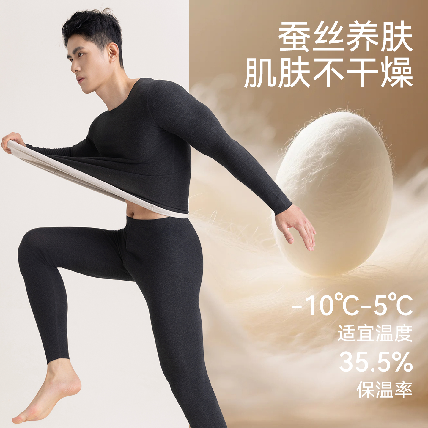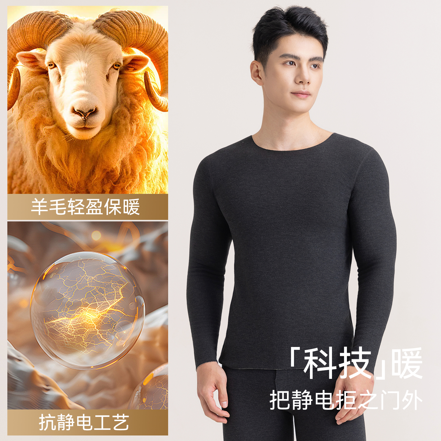 打底秋衣秋裤 羊毛蚕丝圆领内搭线衣裤 情侣秋冬2025款 保暖内衣套装