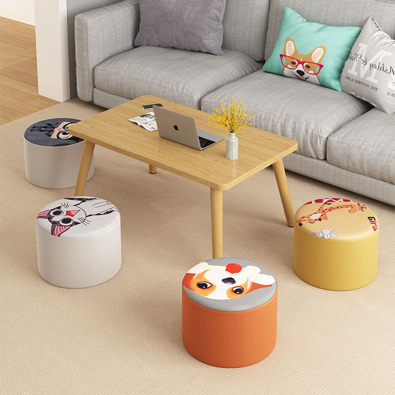 小凳子家用矮凳布艺网红圆凳客厅沙发茶几换鞋 凳创意墩子实木板凳
