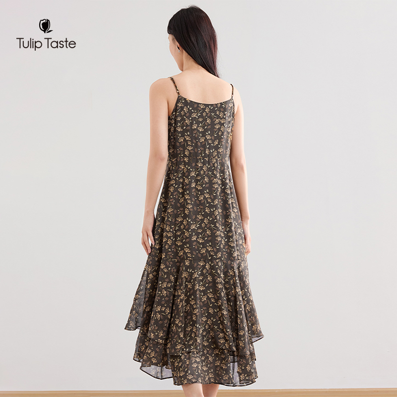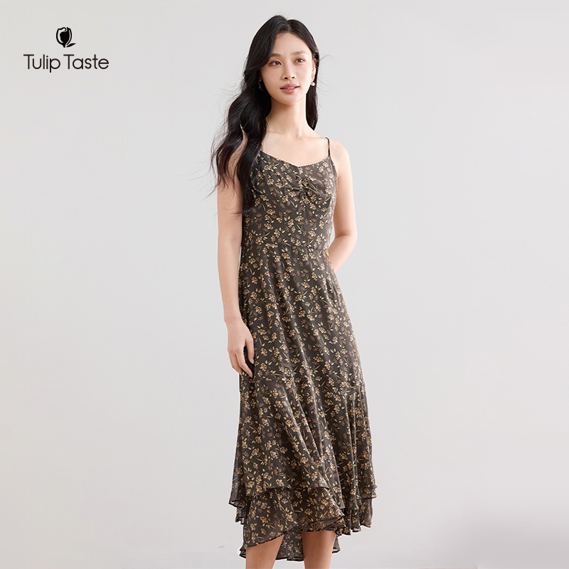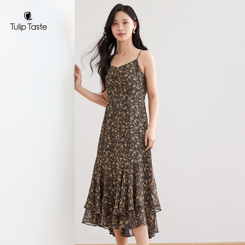 法式 新款 方领印花吊带设计感碎花裙1265587 连衣裙2025秋季 HM女装