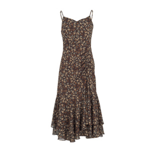 复古工装 KEIKO 美式 新款 风咖色长裙 设计感斜肩背带连衣裙25秋季