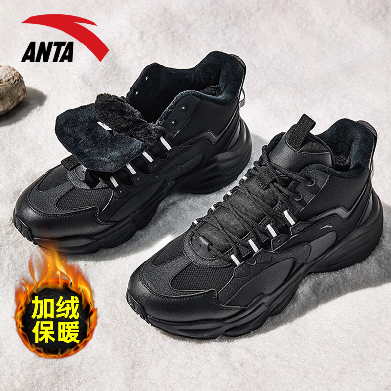 加厚保暖皮面防滑厚底高帮大棉鞋 冬季 雪地靴 男鞋 安踏行者加绒棉鞋
