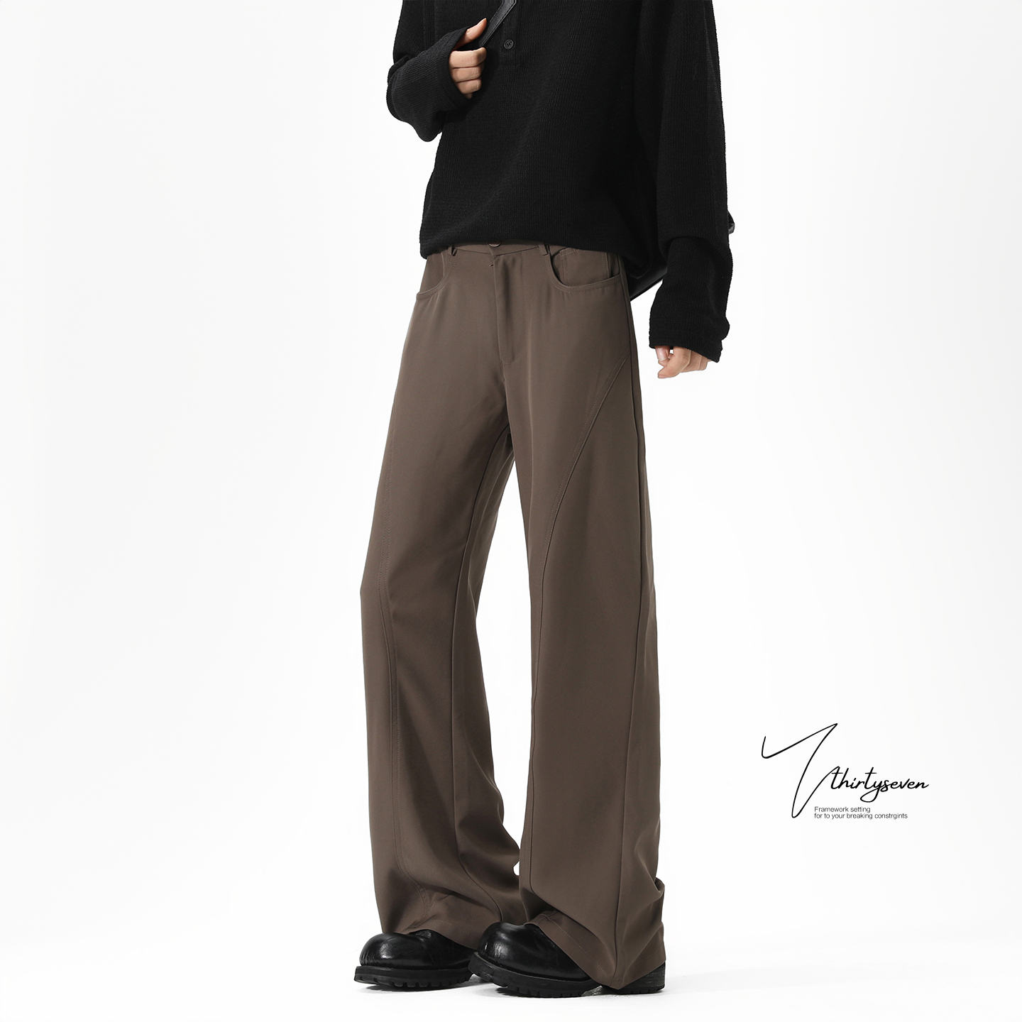 男女直筒微喇vibe裤 黑色休闲裤 子 高街cleanfit廓形西裤 CetKy美式