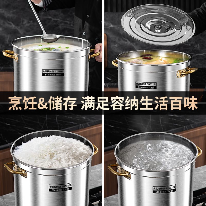316不锈钢汤桶特厚商用带盖圆桶家用大容量汤锅304卤肉桶油桶水桶