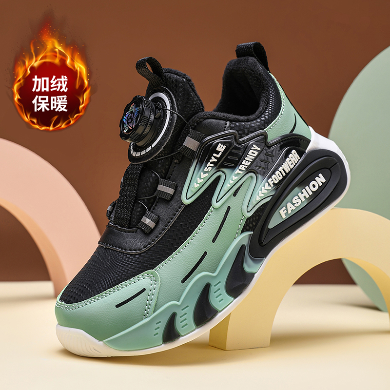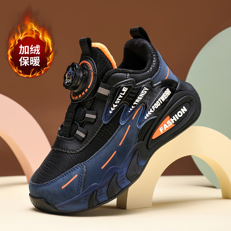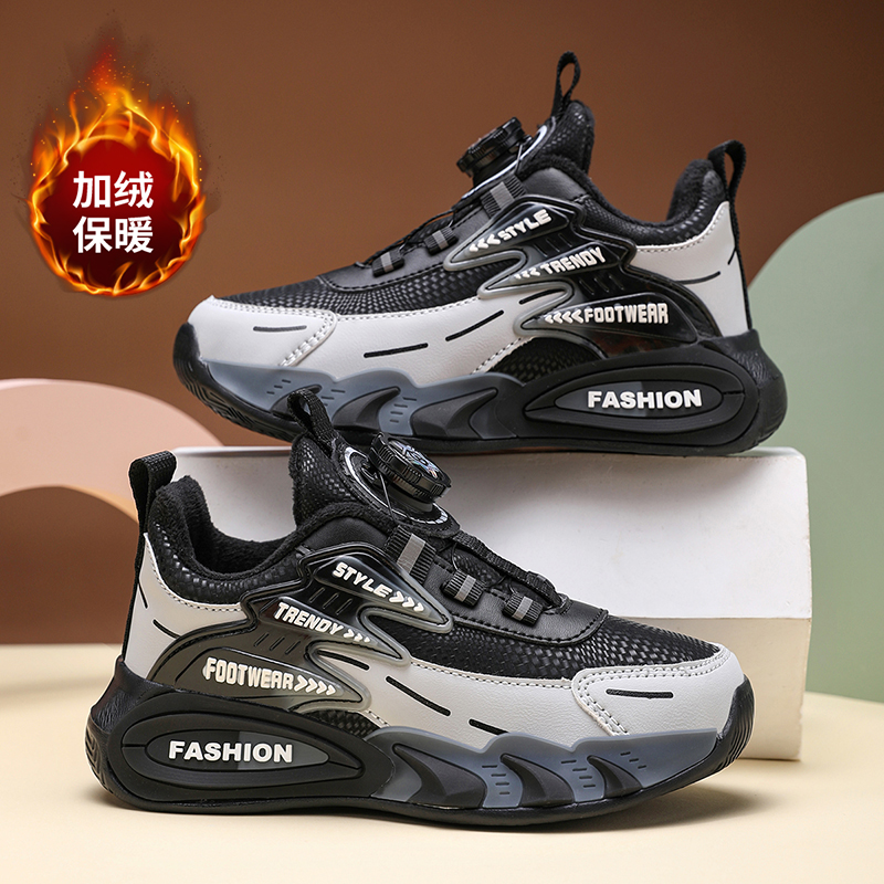黑色秋冬加绒皮面运动鞋 特步男鞋 子男正品 防水跑步休闲鞋 2025新款
