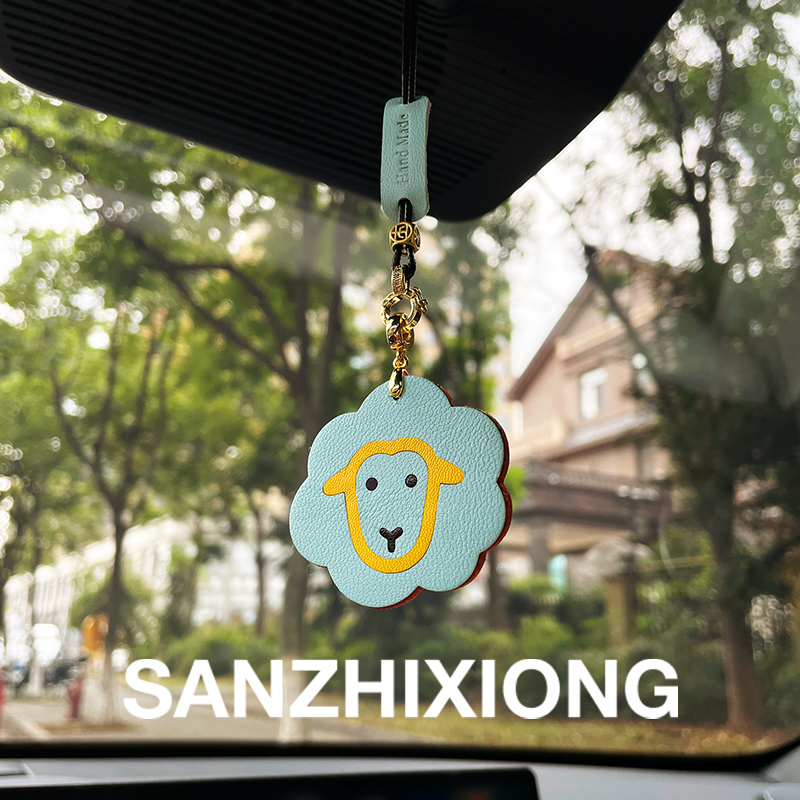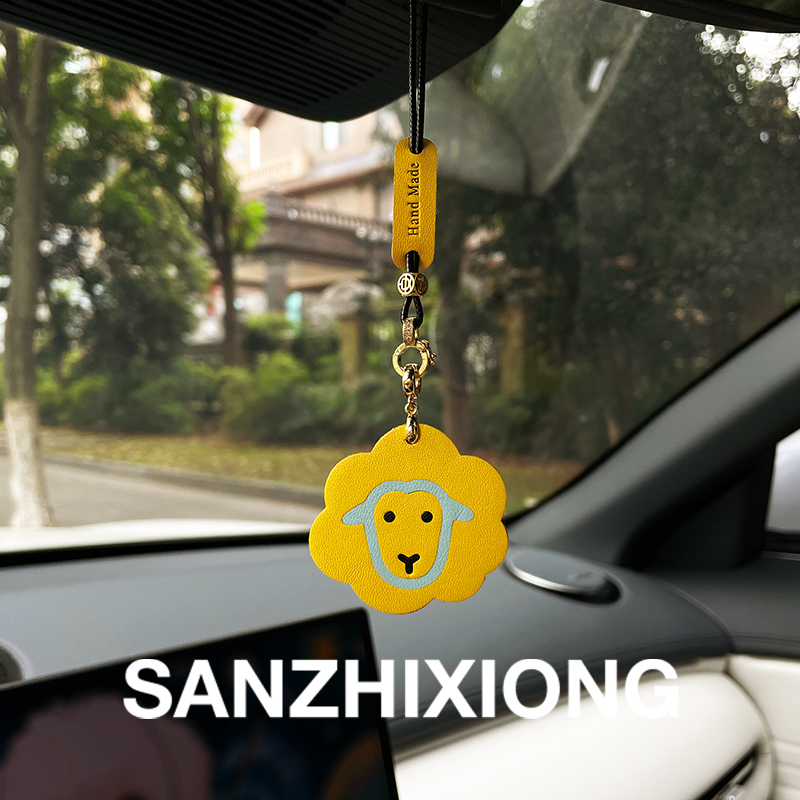 可爱小羊汽车后视镜挂件创意真皮车载装 饰品车挂件女 饰吊坠车内装