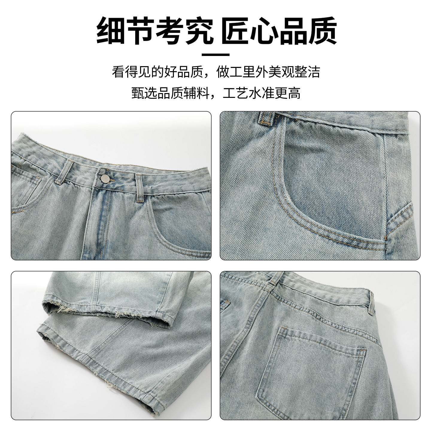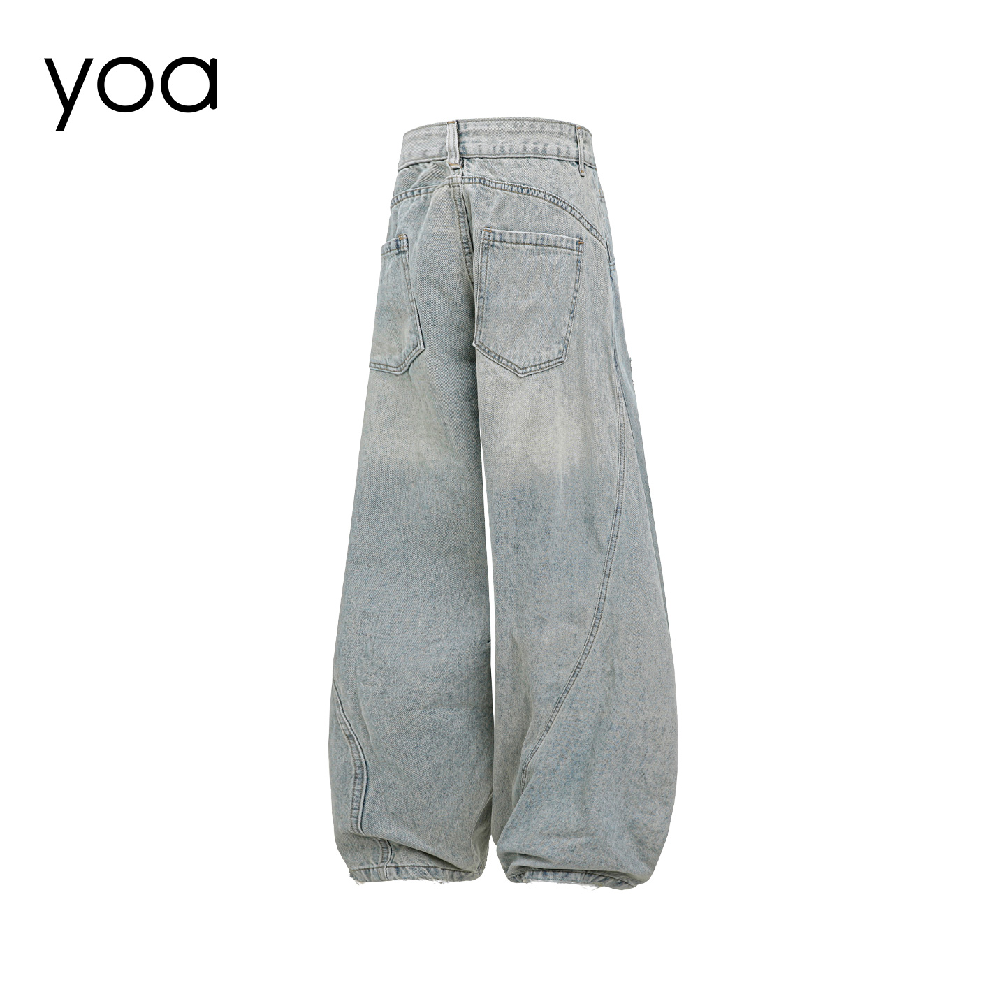 女春秋设计感小众宽松直筒慵懒弯刀阔腿裤 美式 高街浅色水洗牛仔裤