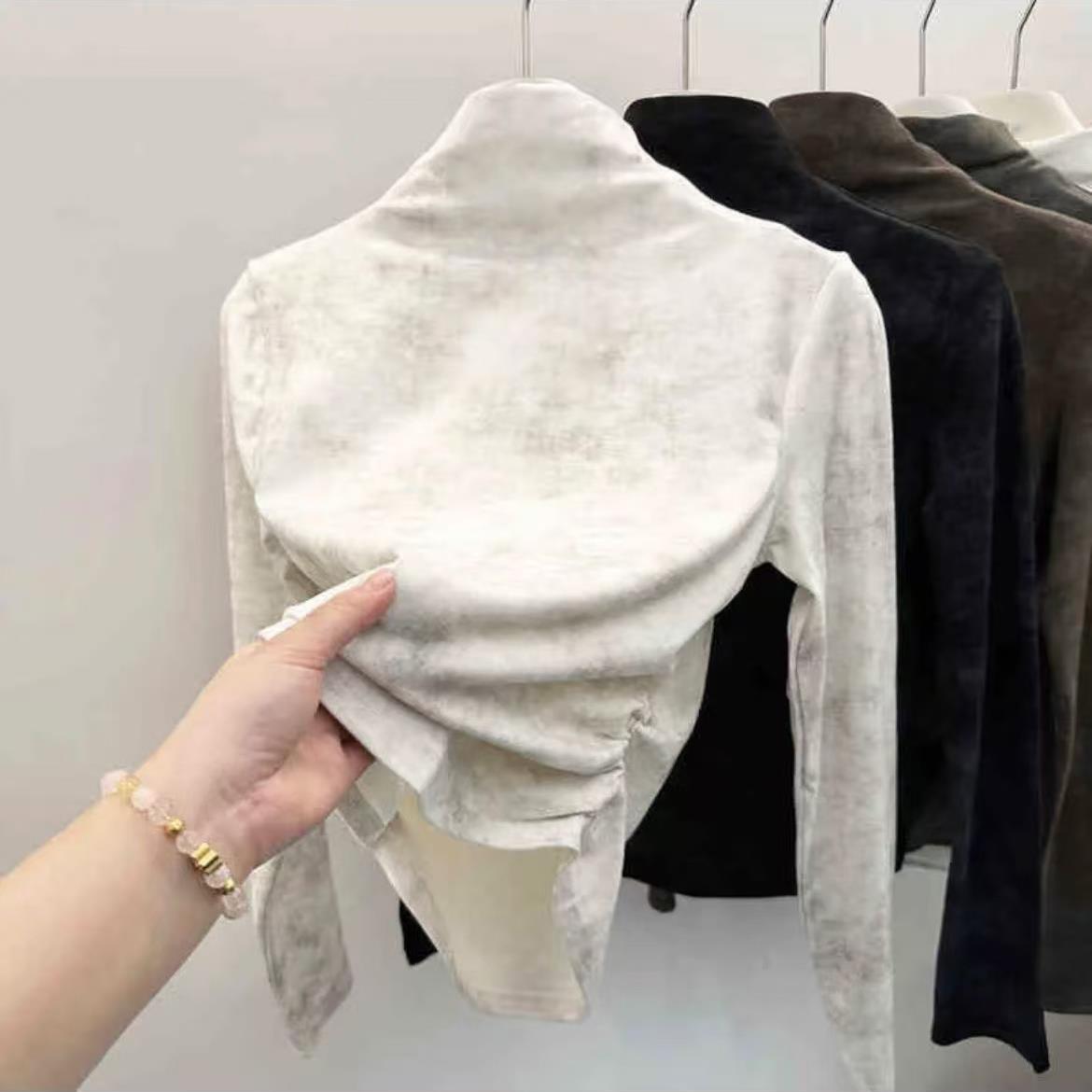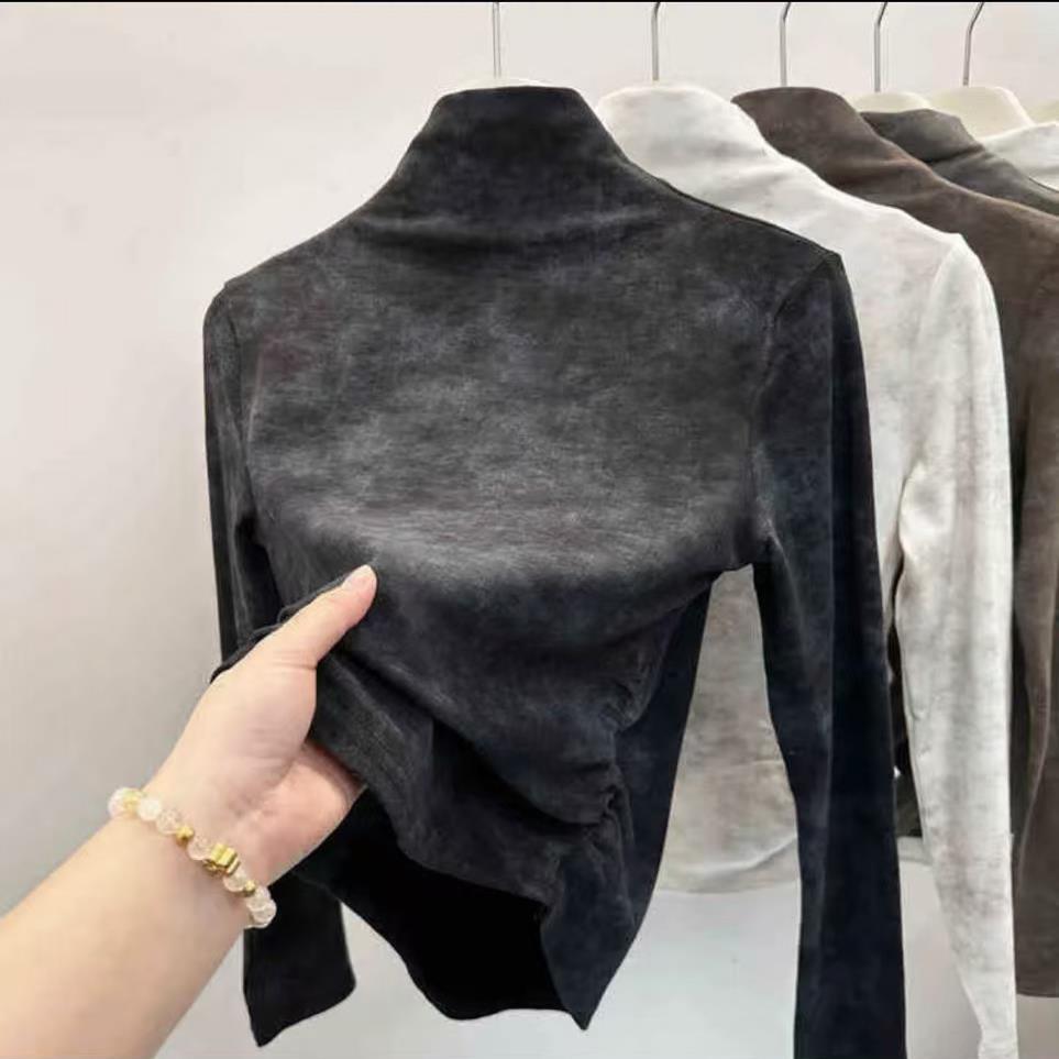 扎染半高领打底衫 洋派内搭收腰显瘦加厚磨毛上衣1022e 女秋冬新款