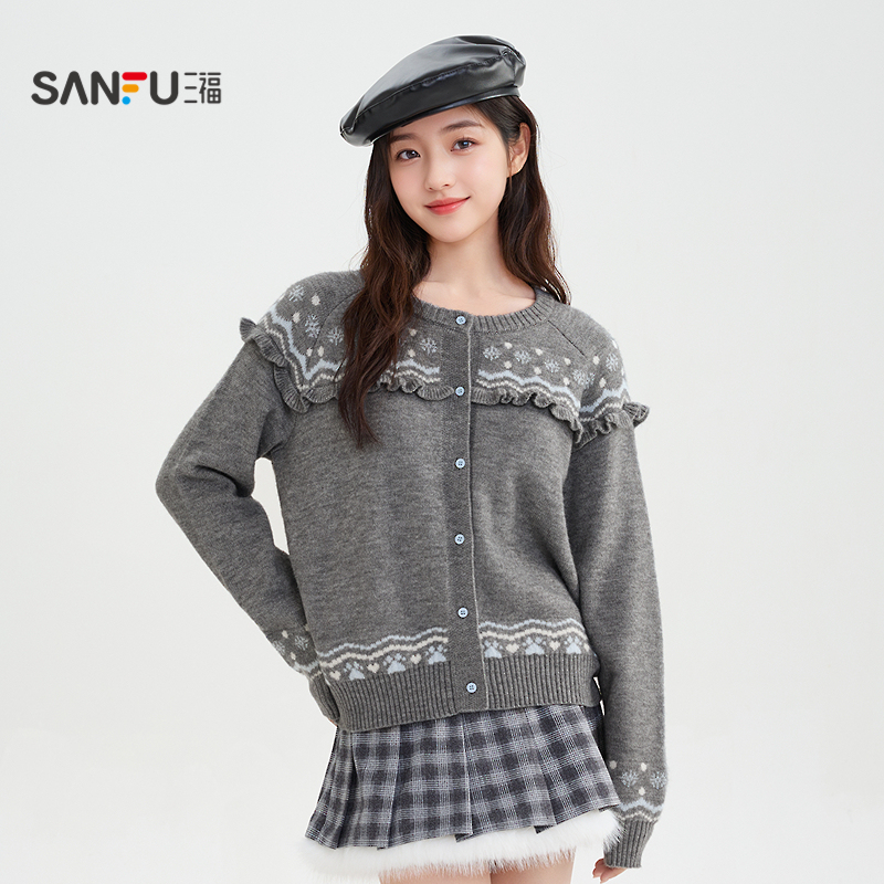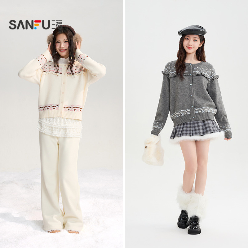 假两件开衫 Basic 毛衣2025秋新款 百家好拼色翻领短款 外套女 House