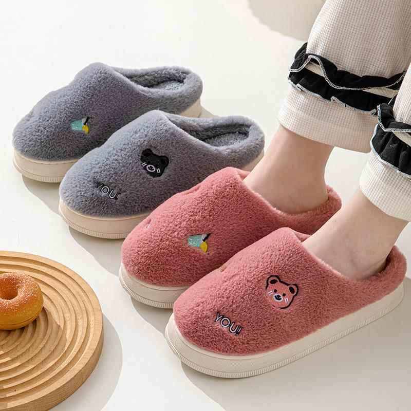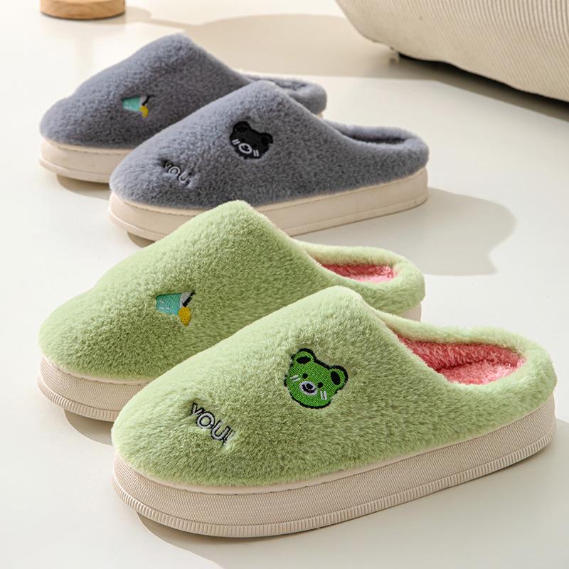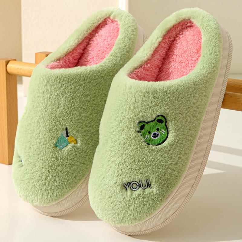 加厚保暖家用情侣鞋 冬季 可爱卡通家居厚底防滑毛毛拖鞋 女款 棉拖鞋