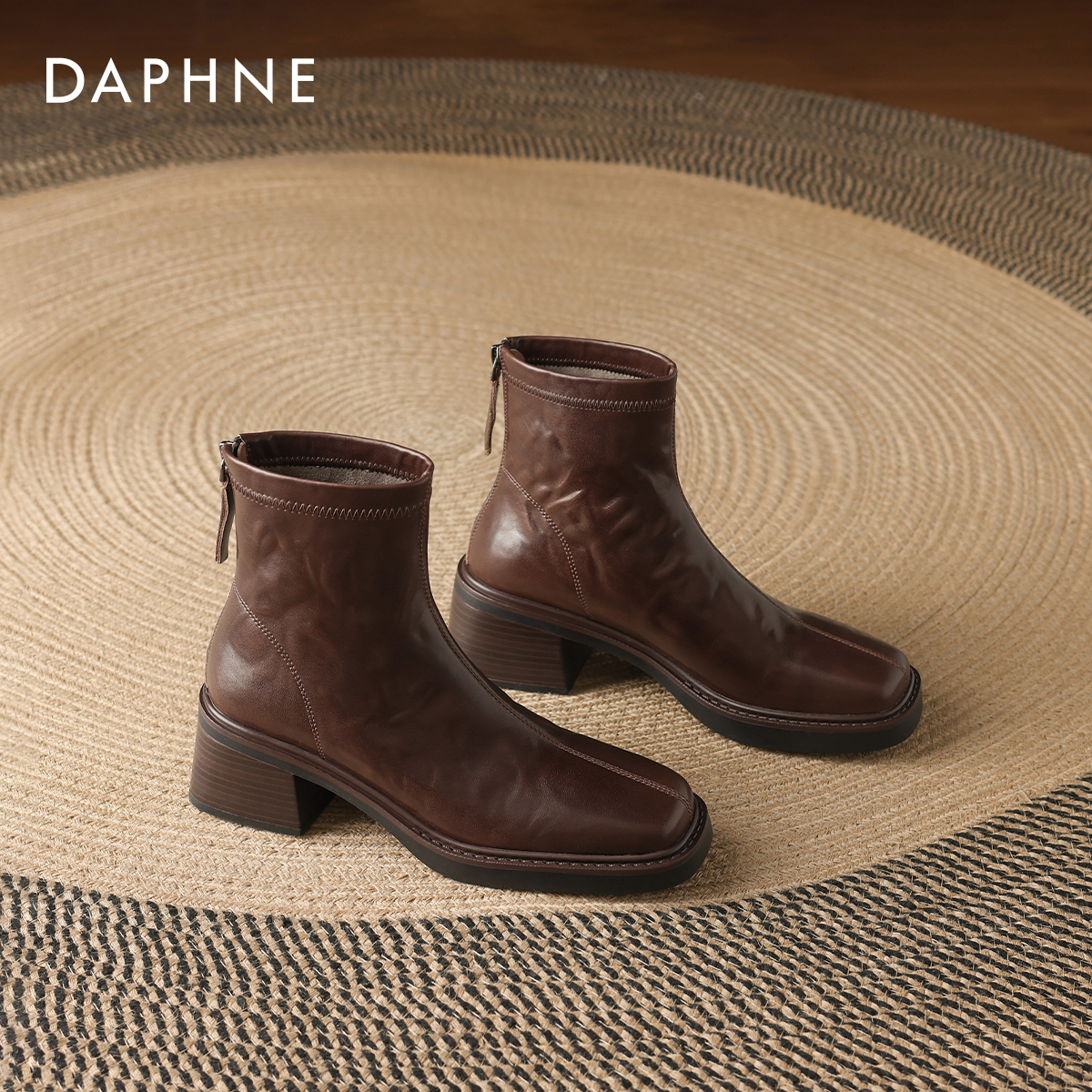 达芙妮黑色短靴子女2025新款 秋冬加绒厚底粗跟马丁靴英伦风瘦瘦靴