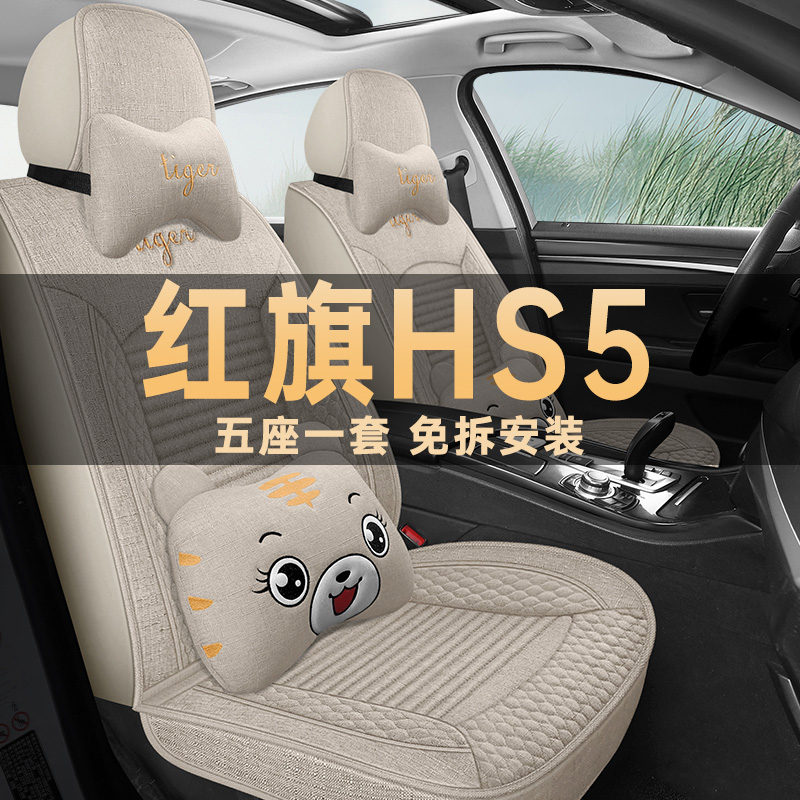 汽车坐垫四季 红旗HS5座椅套旗享pro版 26款 通用亚麻布艺座套