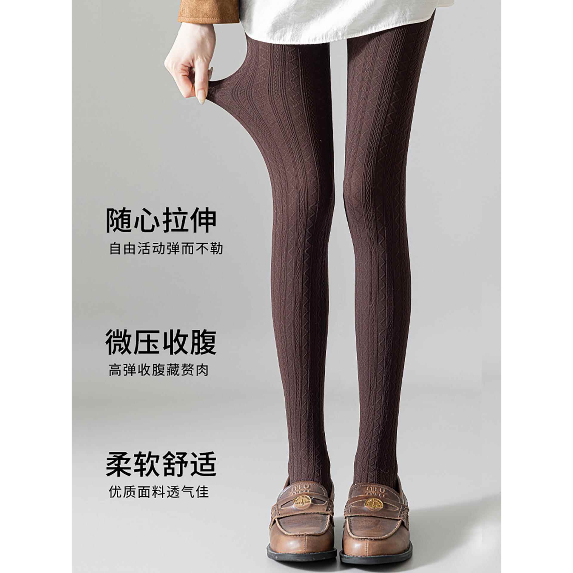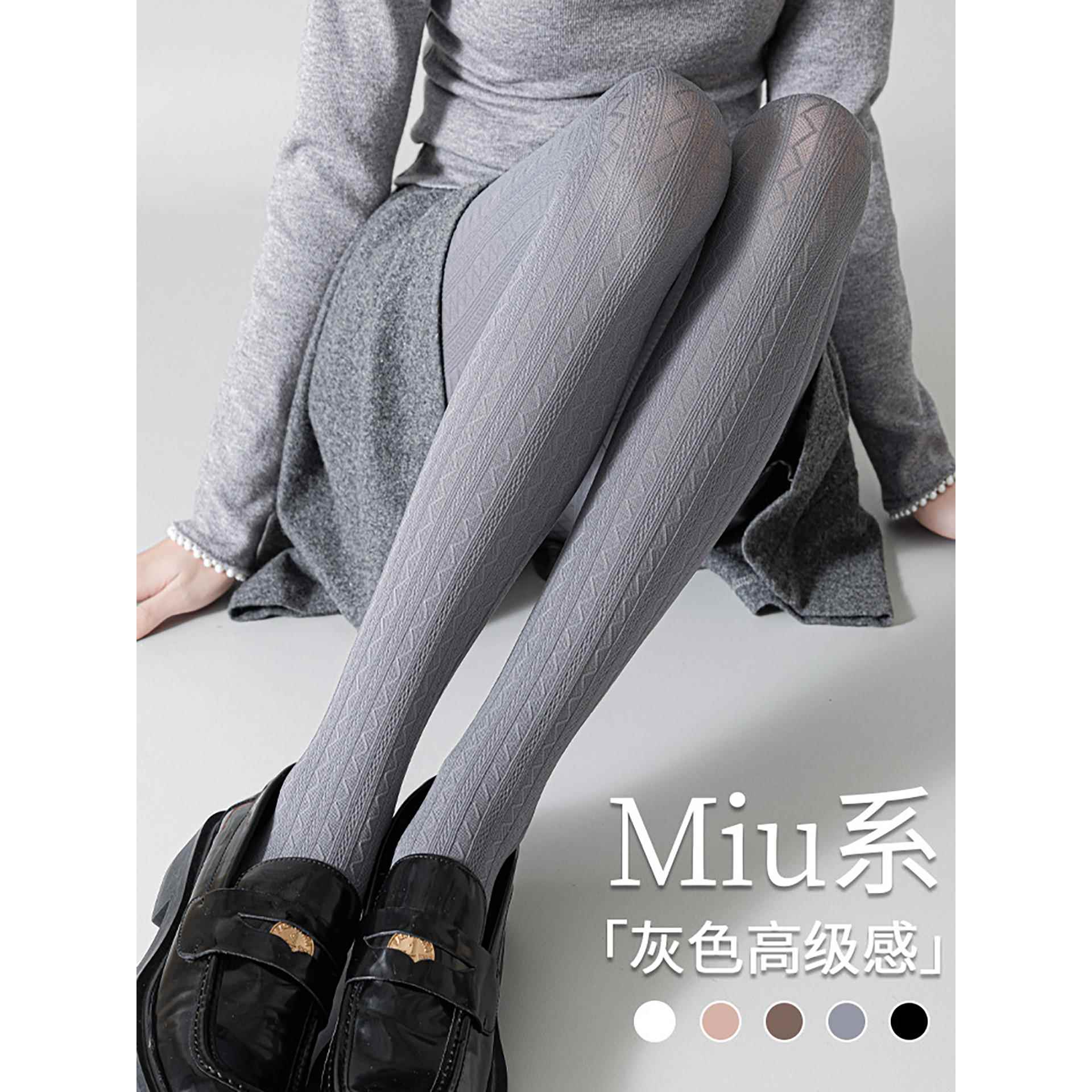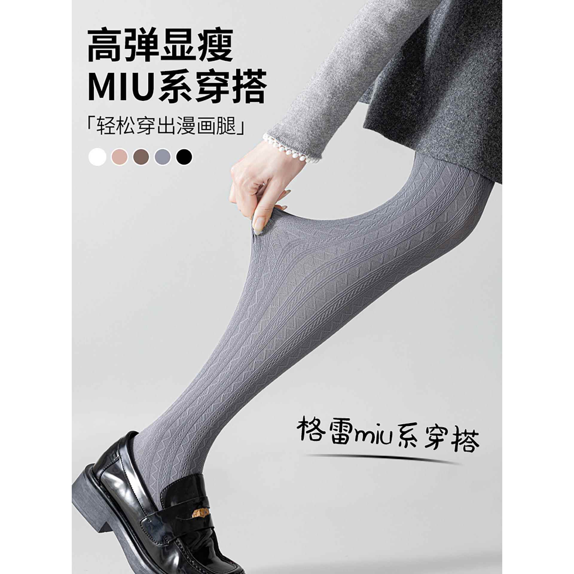 覆古灰色连裤 袜miu系芭蕾风麻花打底袜压力显瘦波浪纹光腿黑丝袜