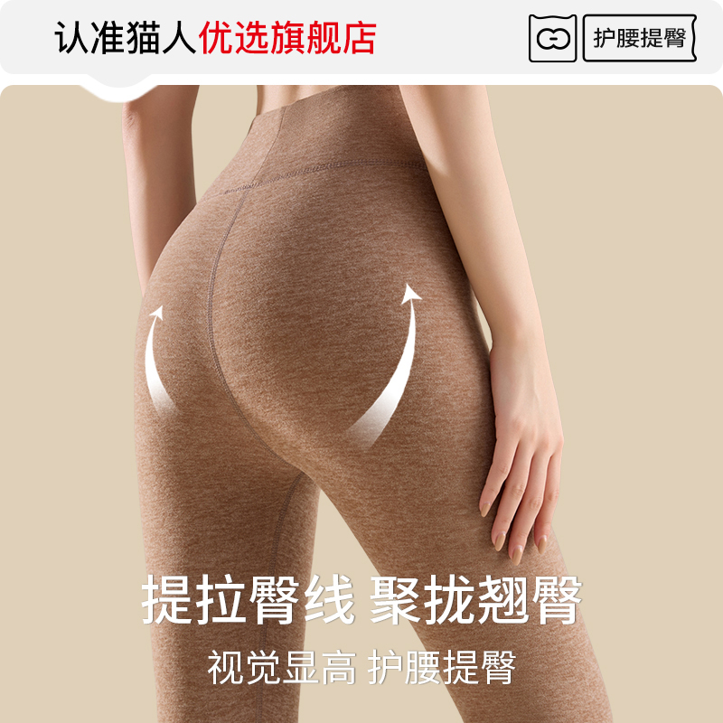 发热蚕丝打底裤 鸭鸭德绒保暖裤 加绒高腰线裤 秋裤 女士内穿紧身冬季