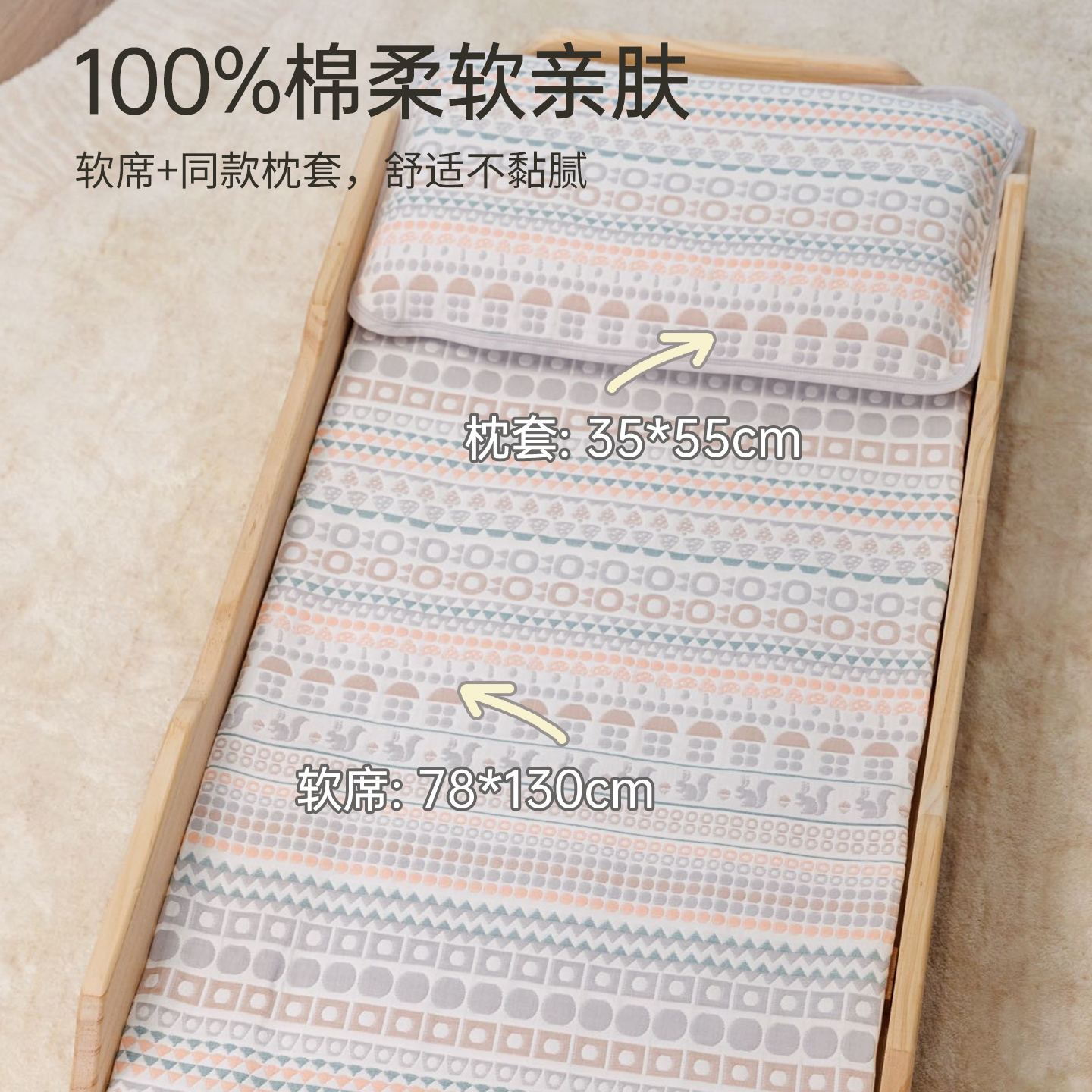 丝享A类婴童可机洗折叠抗菌夏季 空调席 冰丝凉感席三件套2025新款
